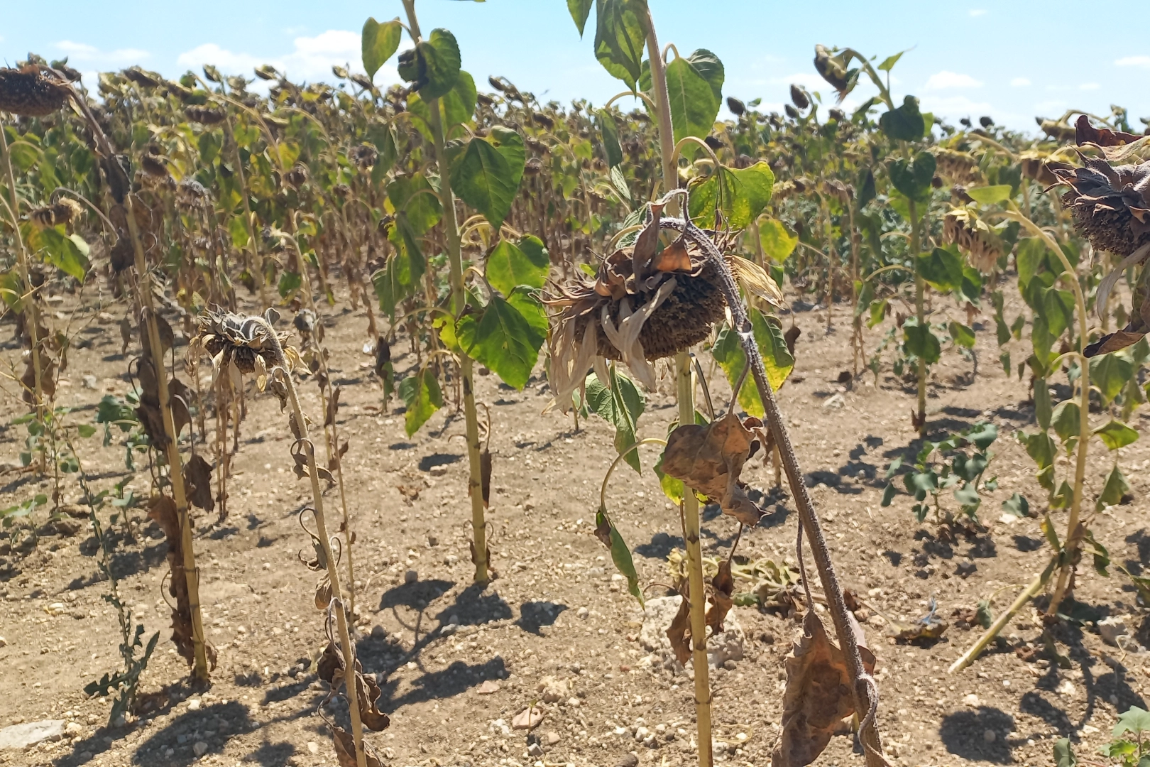Trakya'da ayçiçeği tarlaları bu yıl sararmadan soldu. Kuraklığın etkisiyle son üç yıldır yağışsız geçen mevsimler ve artan sıcaklıklar, ayçiçeğinde verimi düşürdü. Mart ayında başlayan üretim sürecinin bu yıl hüzünle başlayıp, hüzünle bittiğini söyleyen Lalapaşa Ziraat Odası Başkanı Taner Öztürk, üreticinin başka ürün arayışına girdiğini açıkladı. Alternatif ürün arayışı Ayçiçeğinin Trakya için hem ekonomik hem de kültürel bir sembol olduğuna dikkat çeken Öztürk, "Ama bu şartlarda devam etmek mümkün değil. Toprağı ekip biçiyoruz ama karşılığını alamıyoruz. Alternatif ürünleri denemekten başka çaremiz kalmadı" ifadelerini kullandı.