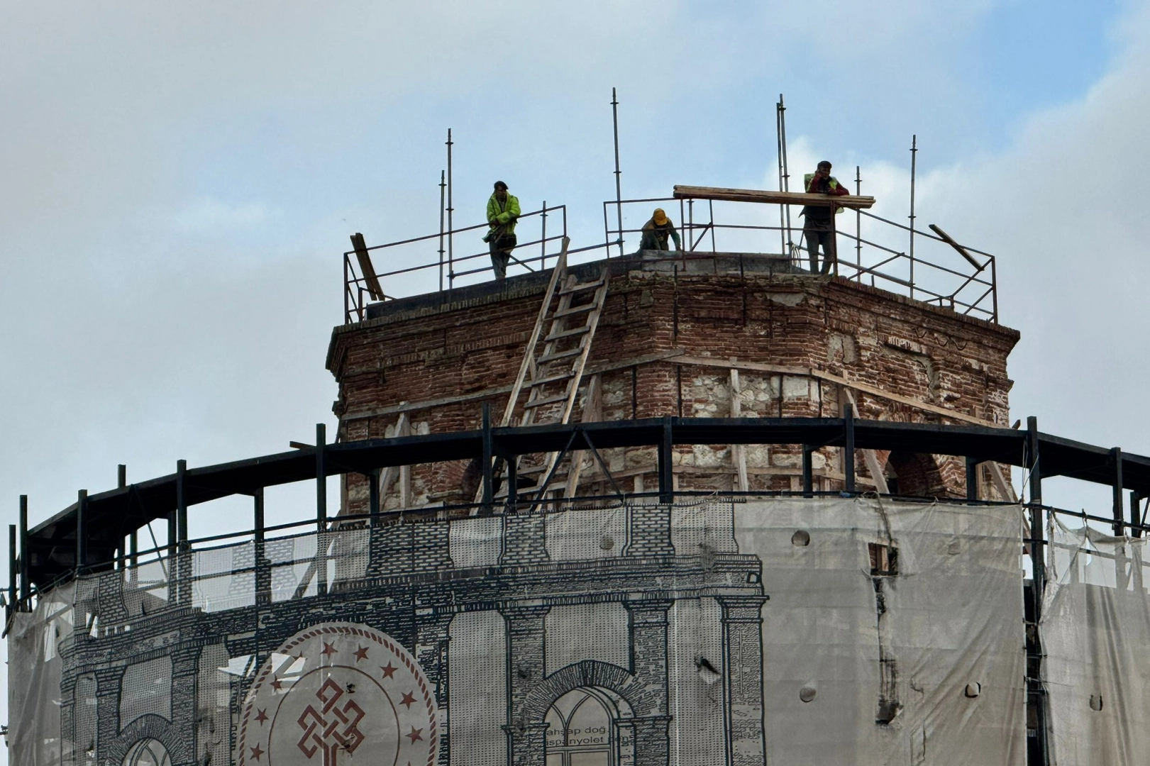 Ekiplerin iskeleler kurup güçlendirme çalışması yaptığı teras bölümündeki çalışmaların tamamlanmasıyla ziyaretçi girişine açılacak.