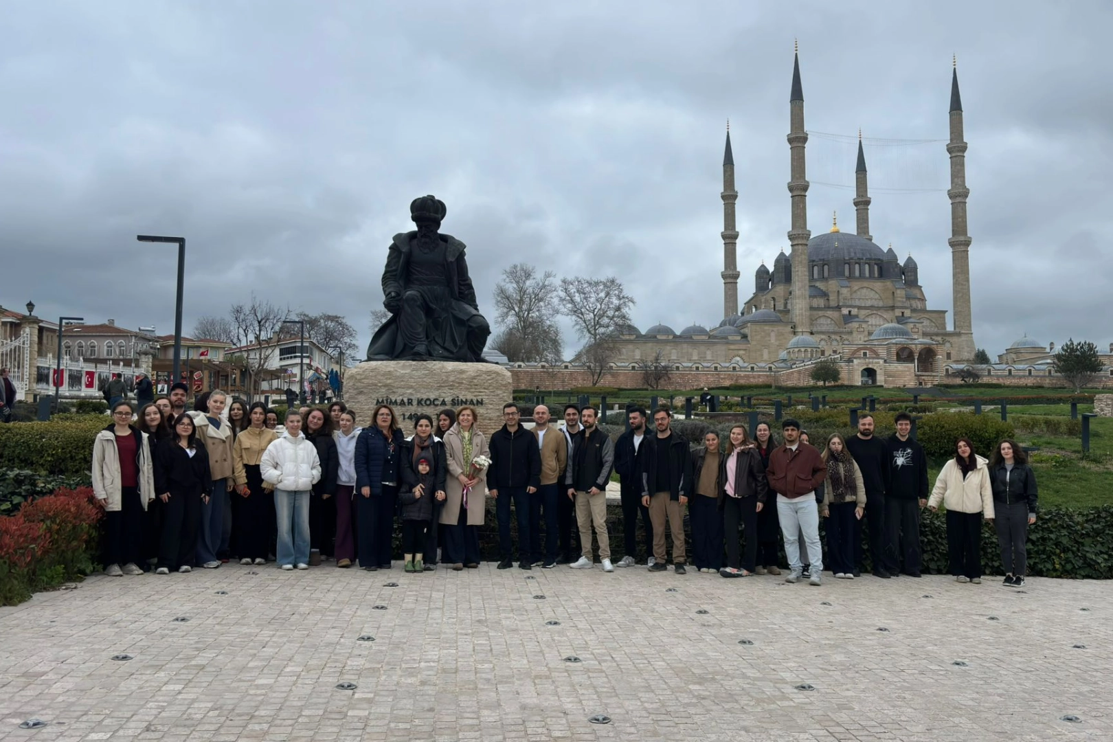 Trakya Üniversitesi Mimarlık Fakültesi Mimarlık Bölümü öğrencileri, Mimar Sinan’ı anmak amacıyla düzenlenen etkinlikler kapsamında önce Mimar Sinan Anıtı önünde buluşarak çiçek bıraktı. Ardından Selimiye Arasta Çarşısı’nı gezen öğrenciler, programın devamında Selimiye Camii’ne geçerek hem tarihi yapıyı yakından gözlemleme hem de mimari detaylarını yerinde inceleme fırsatı buldu.