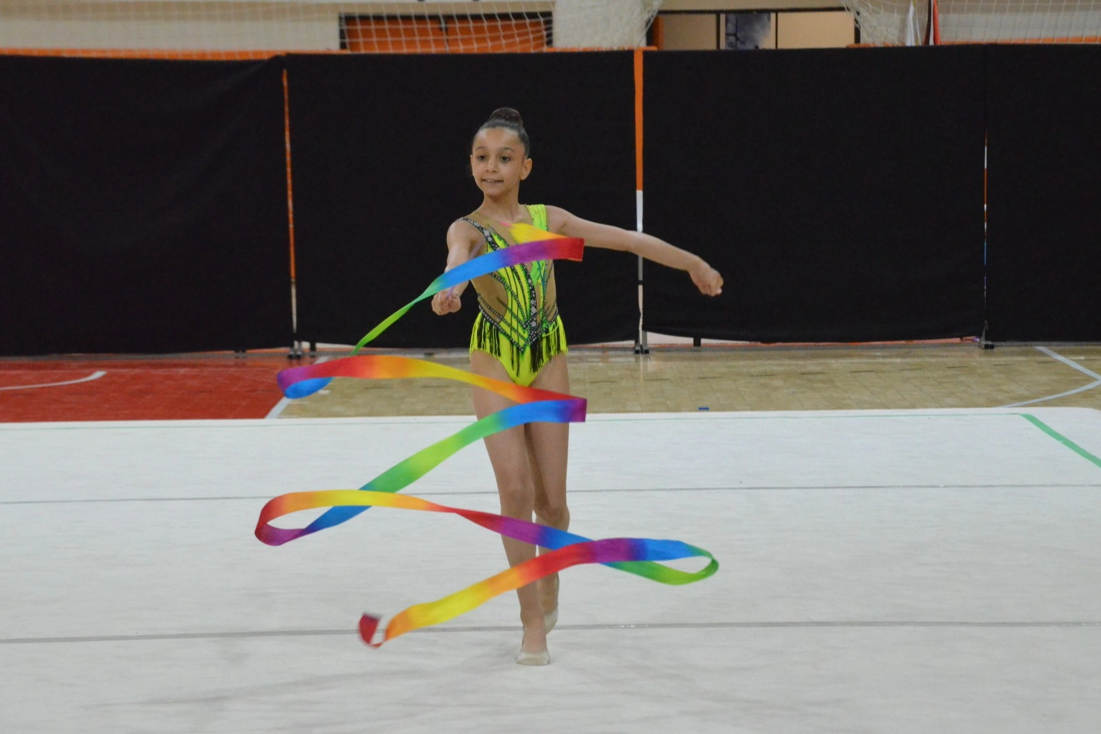 Edirne Spor Salonu’nda gerçekleştirilen ritmik cimnastik karşılaşmalarında minik sporcular, hazırladıkları gösterilerle hem yeteneklerini sergiledi hem de 23 Nisan coşkusunu doyasıya yaşadı. Farklı yaş kategorilerinde gerçekleştirilen organizasyonda sporcular, müzik eşliğinde sergiledikleri performanslarla büyük beğeni topladı.
