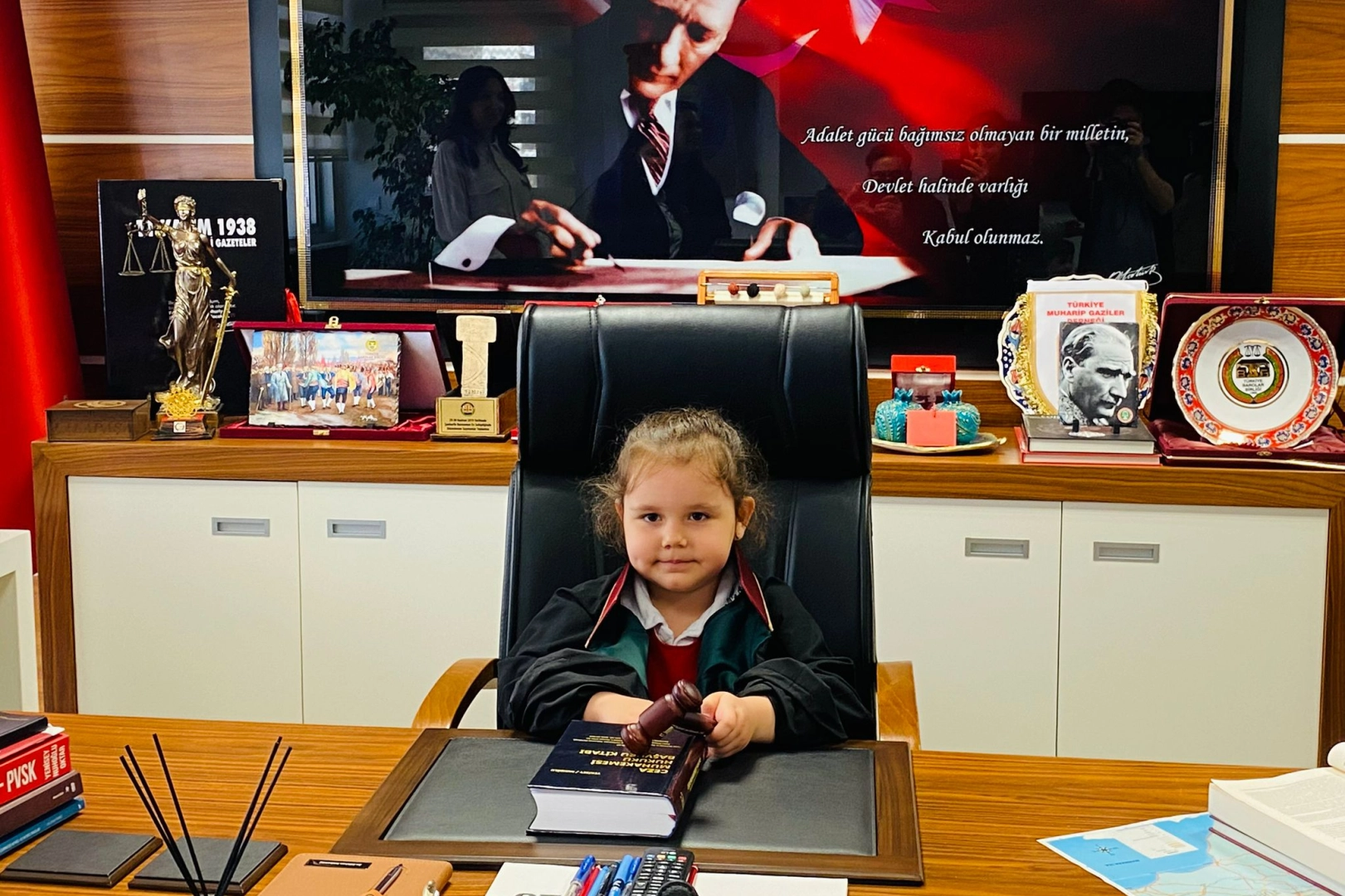Programın en dikkat çekici anlarından biri ise temsili başkanlık uygulaması oldu. Etkinlik kapsamında seçilen anasınıfı öğrencisi Güneş Ölmez, Edirne Baro Başkanı Av. Gökhan Karakoç’un koltuğuna oturdu. Ölmez, bu temsili görevle baronun “ilk kadın başkanı” olarak kayıtlara geçti.