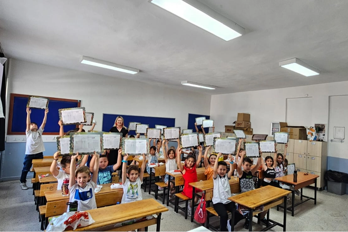 2024-2025 eğitim-öğretim yılının sona ermesiyle bir üst sınıfa geçmenin mutluluğunu yaşayan öğrencilere karnelerini sınıf öğretmeni Filiz Öztürk tarafından verildi. Tek tek öğrencilerini tebrik eden sınıf öğretmeni Öztürk, her öğrencisiyle beraber hatıra fotoğrafı çektirdi. Karnelerini alan öğrenciler, yaz tatili öncesi öğretmenleriyle beraber sınıfta doyasıya eğlendiler.