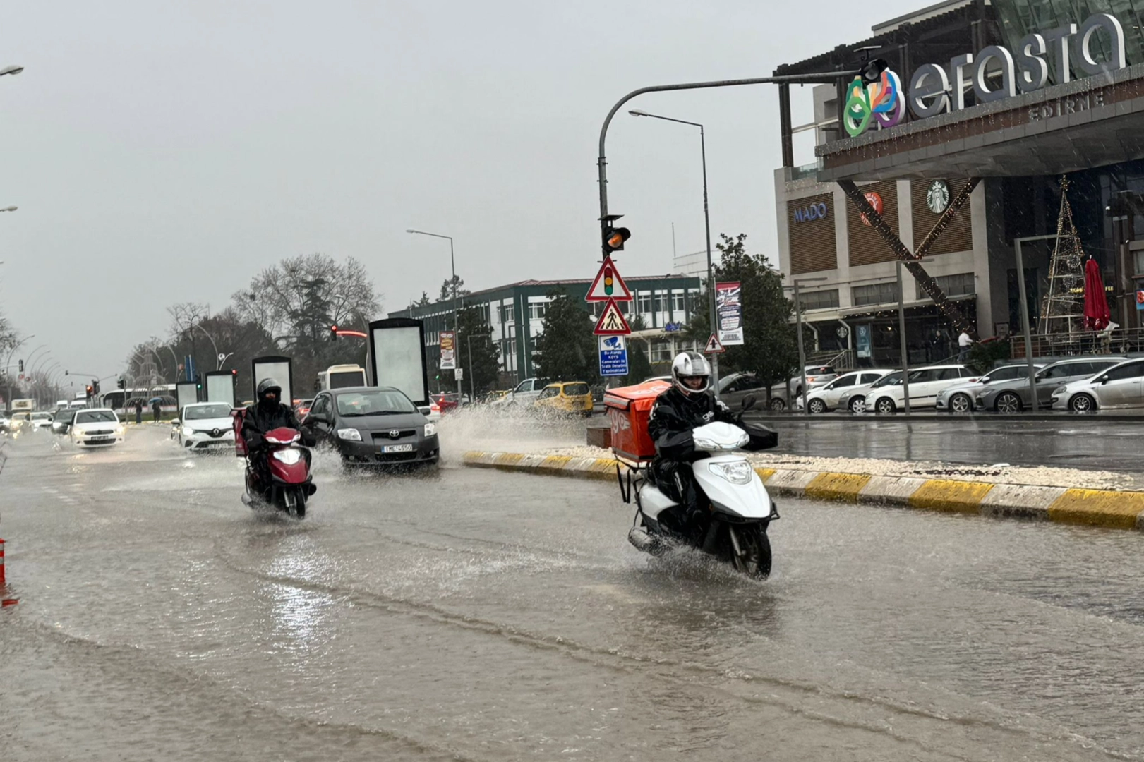 Edirne’de sabah saatlerinde aniden bastıran ve kısa sürede etkisini artıran sağanak yağış, kentin işlek noktalarında hayatı durma noktasına getirdi. Altyapının yetersiz kaldığı alanlarda biriken sular, ulaşımda büyük aksamalara neden oldu.