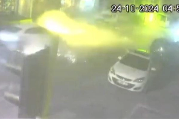 Park halindeki araca çarpılması da bir başka kamera tarafından saniye saniye kaydedildi. Aydınlatma direğinin de zarar gördüğü kazada, çarpma anında oluşan kıvılcımlar görüntülere yansıdı.