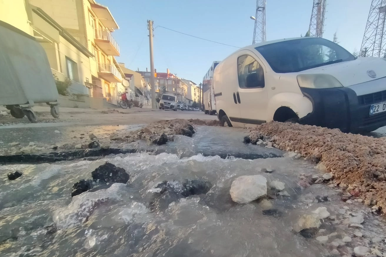 Edirne'nin Yancıkçı Şahin Mahallesi Atatürk Caddesi'nde bulunan içme suyu hattındaki patlak, yolun çökmesine neden oldu.