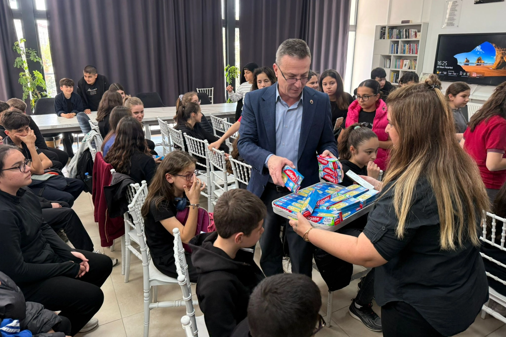 Etkinlik sonunda katılımcı çocuklara diş fırçası ve diş macunu hediye edildi.