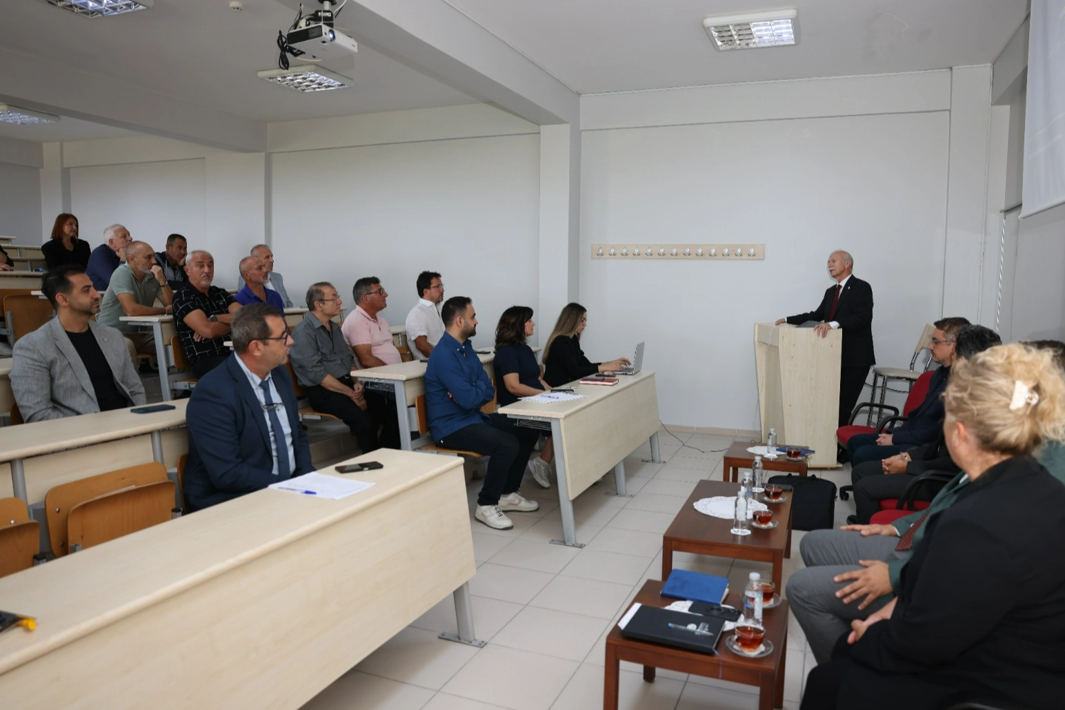 Toplantı, fakültenin idari ve eğitim binasında yer alan amfide gerçekleştirildi. Rektör Hatipler’e, Fakülte Dekanı Prof. Dr. Nurper Özbar, Dekan Yardımcıları Doç. Dr. Cüneyt Taşkın ve Doç. Dr. Müberra Çelebi ile fakültenin akademik kadrosu eşlik etti.