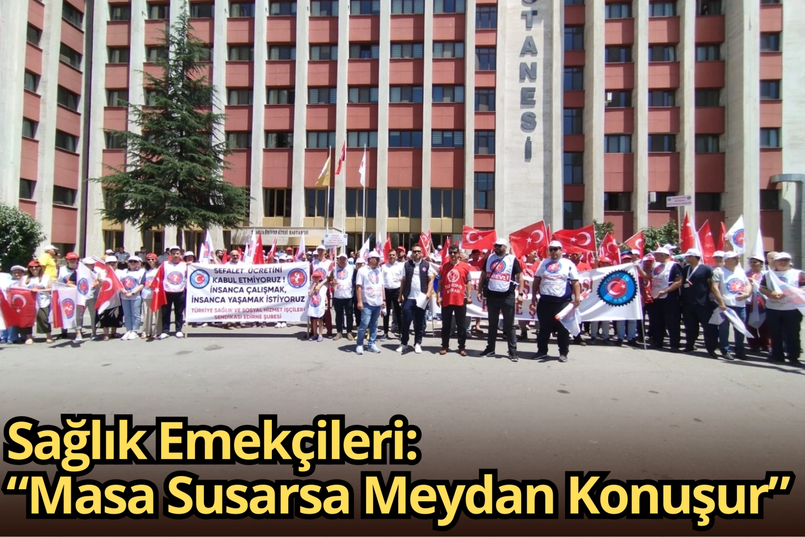 Hazine ve Maliye Bakanı’nın kulaklarını tıkamış, halktan ve emekçiden kopmuş, bildiğini okuduğunu ifade eden Özdemir; “Geçinemiyoruz dedik, zordayız dedik, defalarca anlattık, uyardık; yine uyarıyoruz: Biz bu ülkenin üretim gücüyüz! Binlerce çalışan kamu işçisiyiz. Görmezden geldiğiniz alın teriyle çalışan işçiler, kamu hizmetlerinin temel taşlarıdır. Gece gündüz demeden, her koşulda çalışan biz emekçiler sayesinde kamu düzeni aksamadan sürmektedir. Bu mesele yalnızca kamu işçisinin değil, herkesin meselesidir. Kamuoyunun da bu adaletsizliğe ve aksayacak olan kamu hizmetlerine sessiz kalmayacağı da bilinmelidir. Emekçiyi oyalamak, belirsizlik içinde bekletmek sosyal barışa zarar verecektir. Biz işçilerin beklemeye, oyalanmaya, belirsizliğe tahammülü kalmamıştır. Bizi yönetenler de sosyal devletin gerektirdiği görevi yerine getirmelidir. Hükümet en kısa zamanda süreci daha fazla uzatmadan, işçinin, emekçinin hakkını vermeli; adil ve kabul edilebilir bir çözümle sonuçlandırmalıdır. Bu böyle gitmez. Siz duymazdan gelirseniz, biz duyurmasını biliriz. Masa susarsa, meydanlar konuşur. Bu işin sonu greve kadar gider. Artık yeter. Sadaka değil, hakkımızı istiyoruz. Onurlu bir yasam, adil bir ücret, güvenceli bir gelecek istiyoruz. Bugün buradayız, işyerlerimizin önünde bildirilerimizi okuyoruz. Yarın alanlarda olacağız. Geçinemiyoruz, susmuyoruz, geri adım atmıyoruz. Emekten gelen gücümüzü kullanır, gereğini yaparız” diye konuştu.