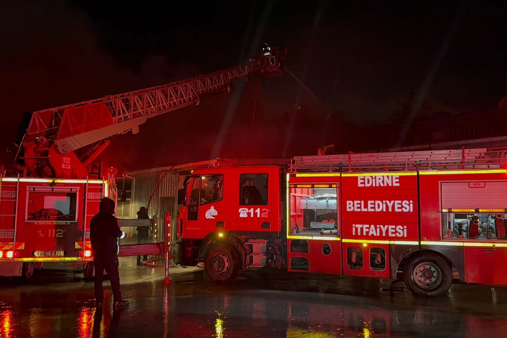 Edirne Belediyesi İtfaiye Müdürlüğü ekipleri, alevleri kontrol altına almak için çalışma başlattı. Yangının bitişikteki iş yerlerine sirayet etmemesi için ekipler yoğun bir çaba sarf ediyor.