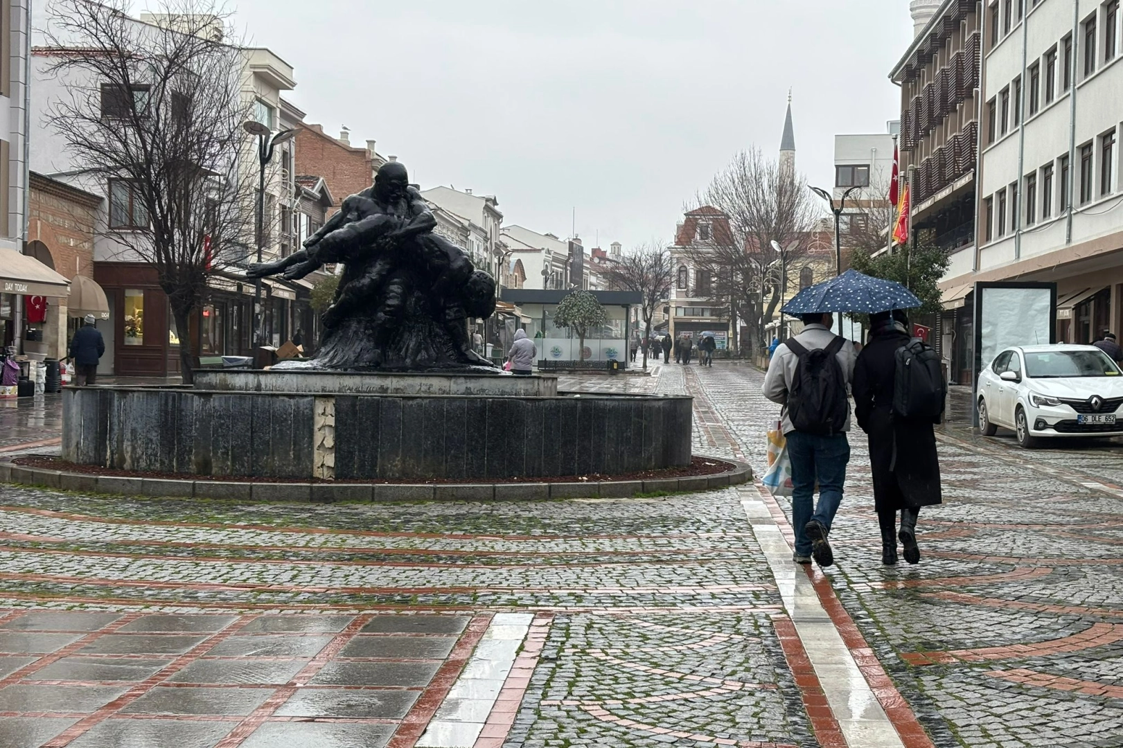 Edirne’de etkili olan yağmur, kent genelinde günlük yaşamı yavaşlattı. Yağış nedeniyle vatandaşlar şemsiyeleriyle yürürken, bazıları dükkân tentelerinin altına ve kapalı alanlara sığınmayı tercih etti.