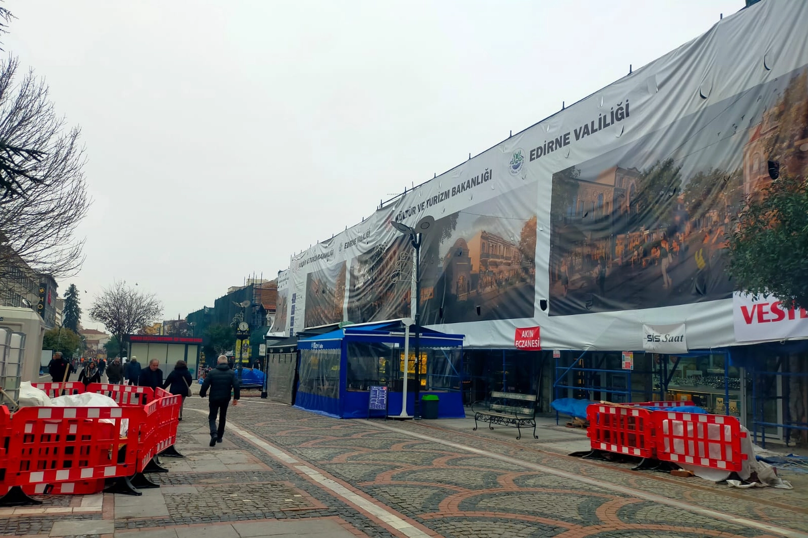 Kültür ve Turizm Bakanlığı ile Edirne Valiliğince yürütülen Sokak Sağlıklaştırma Projesi kapsamında Edirne’nin Saraçlar Caddesi'nde çalışmalar sürüyor.