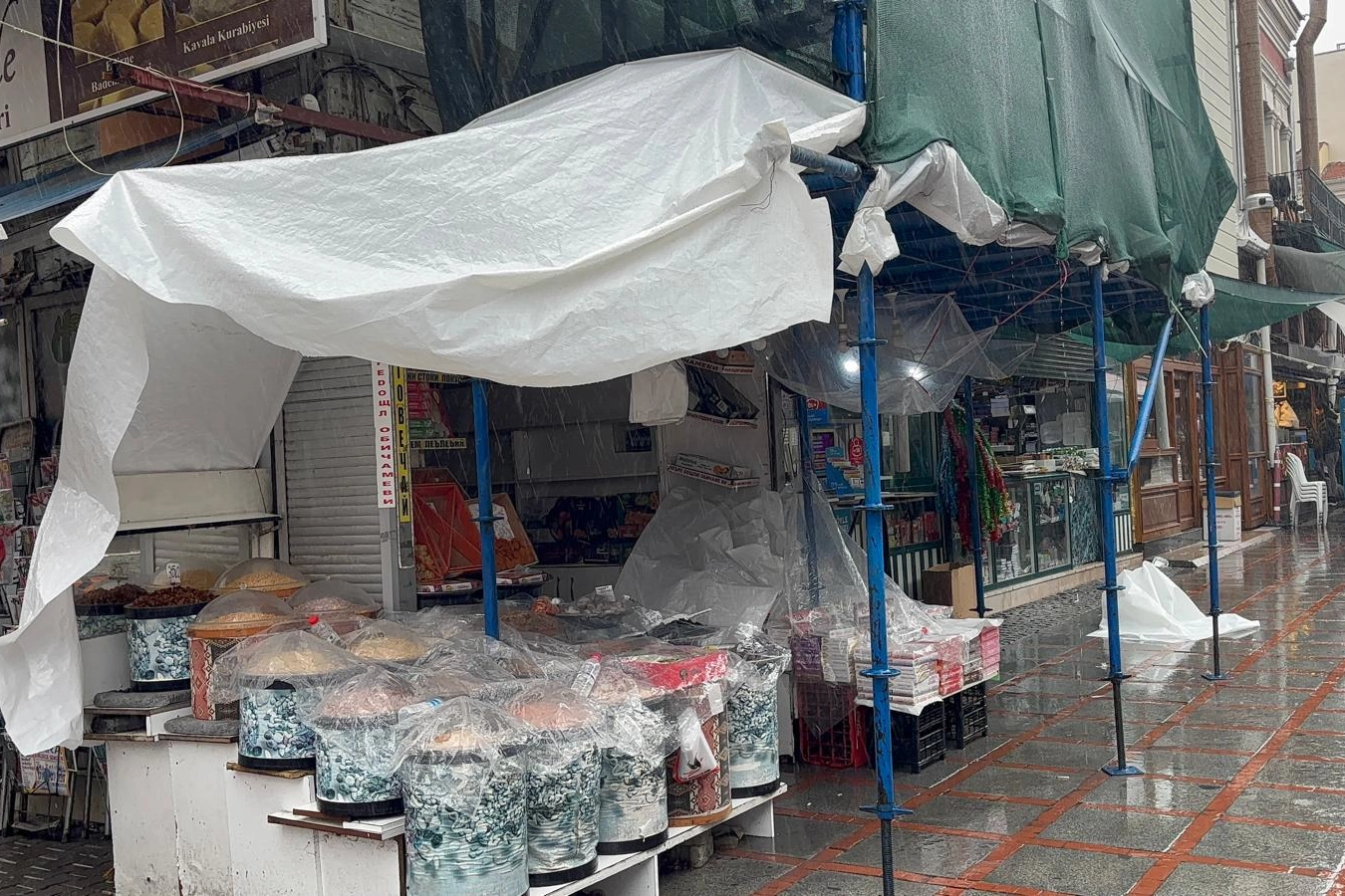 Edirne’de etkisini günlerdir sürdüren yağış, Saraçlar Caddesi’nde yapılan yenileme çalışmalarıyla birleşince esnafın iş yapmasını neredeyse imkânsız hale getirdi. Sabah saatlerinden itibaren dükkanlarını açmak isteyen esnaflar, yağmur ve devam eden tadilat nedeniyle hazırlıklarını öğleye kadar tamamlayamadı.
