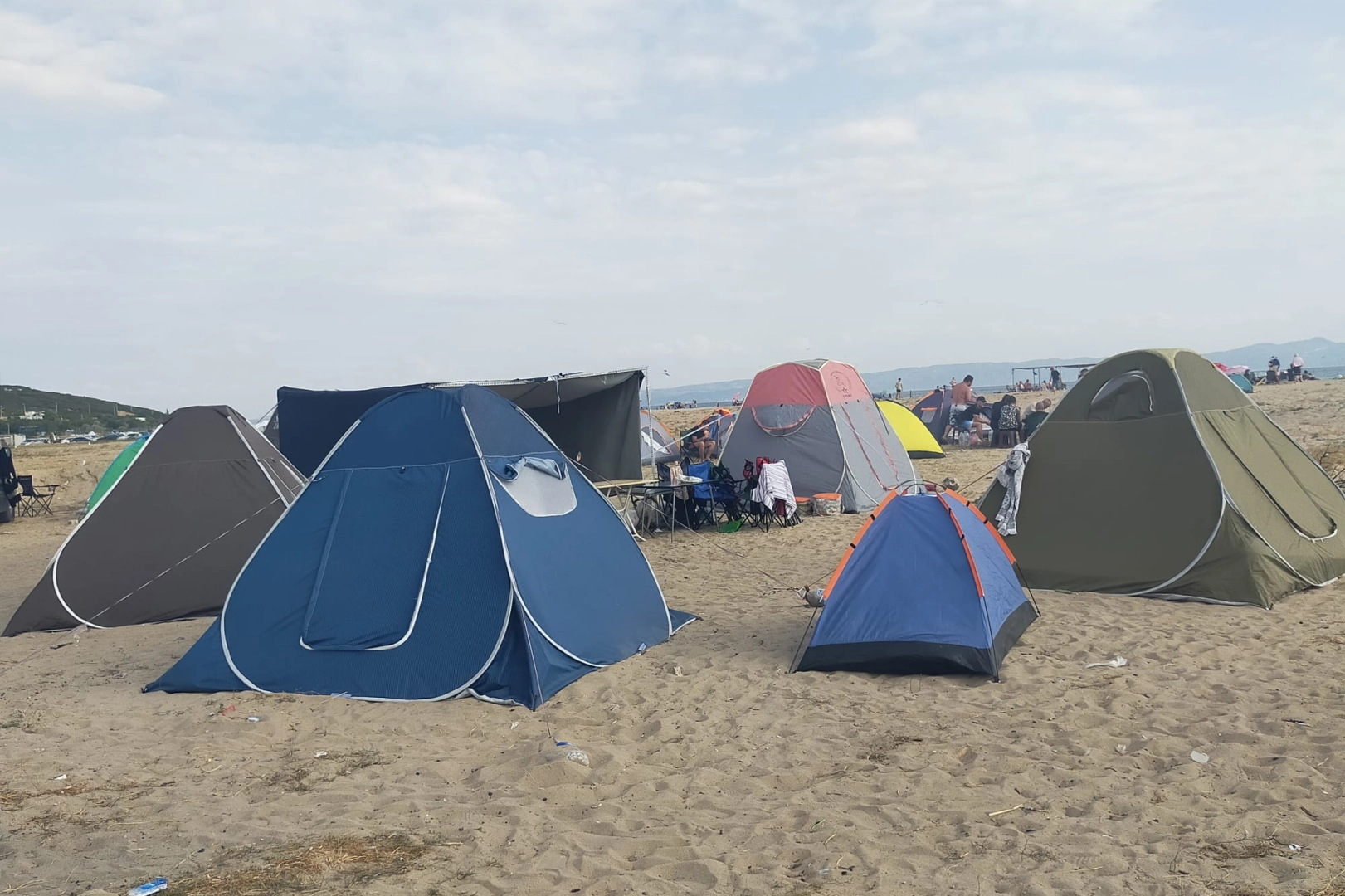 Edirne'nin Ege Denizi kıyısındaki Saros Körfezi'nde vatandaşlar çadırda konaklamayı tercih ediyor.