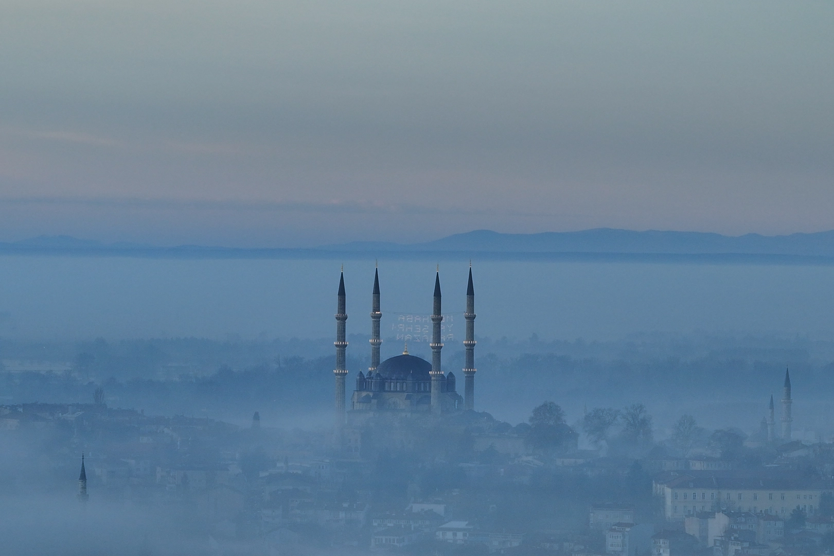Sis bulutunun içerisinde kalan Selimiye Camisi havadan görüntülendi.