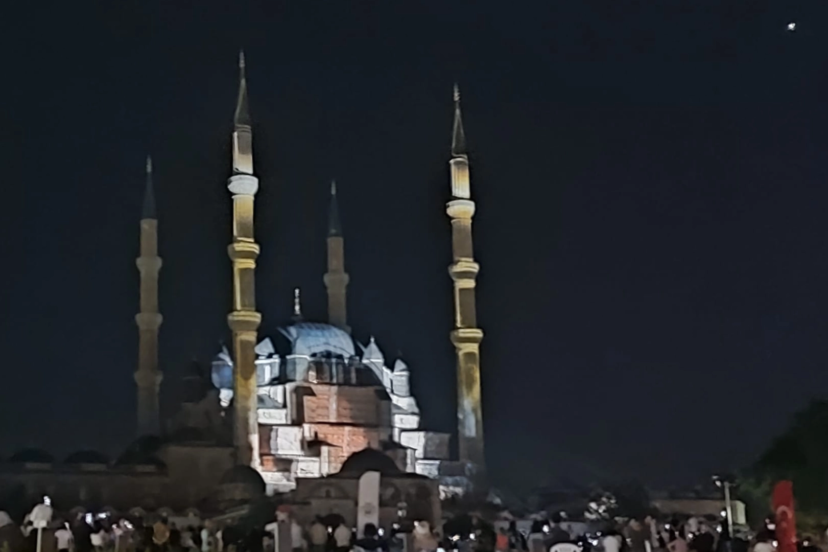 Etkinlikler kapsamında Selimiye Camii’nin görkemli yüzeyinde, ‘Video Mapping’ teknolojisiyle İstanbul’un fethi üç boyutlu olarak canlandırıldı.