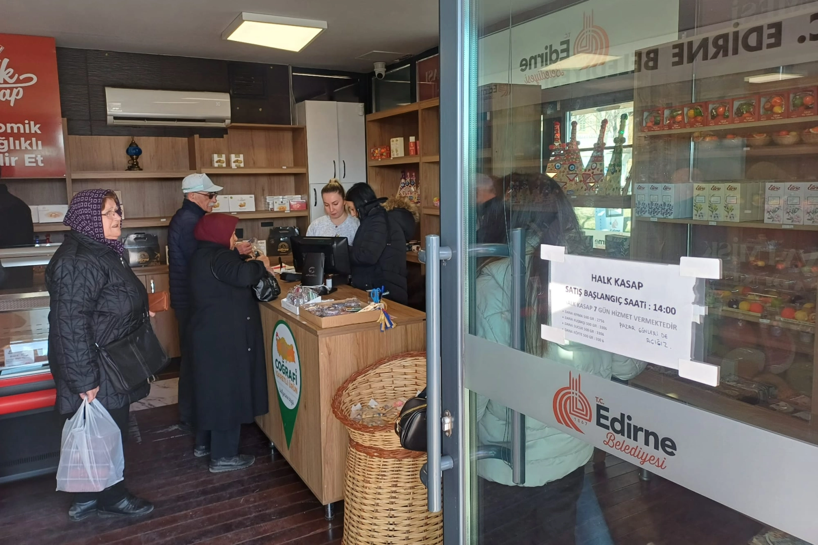 Edirne Belediyesi tarafından hizmete açılan Halk Kasap, soğuk havaya rağmen vatandaşların yoğun ilgisini görmeye devam ediyor.