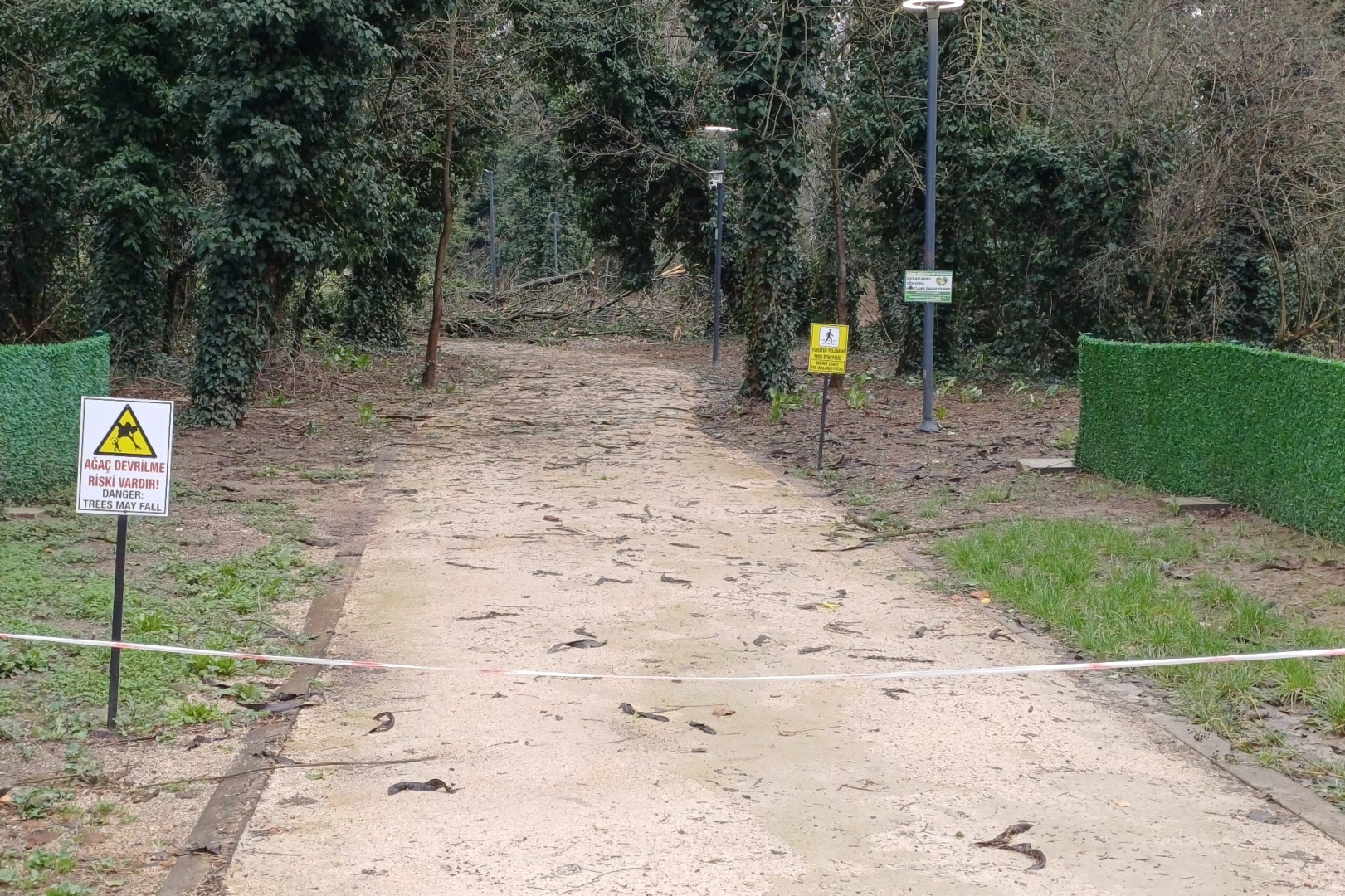 Ağaç devrilmesi ve dal kırılması riskine karşı orman içindeki yürüyüş parkurlarının ziyaretçilere kapatılırken; alanda bulunan kafeler ise hizmet vermeye devam ediyor.