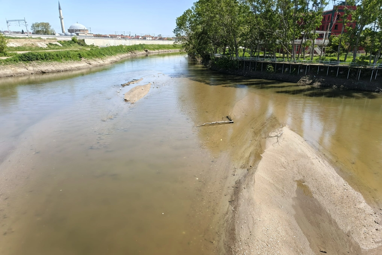 Nehirdeki su seviyesinin düşmesiyle birlikte Edirne’yi Karaağaç’a bağlayan tarihi köprülerden biri olan Ekmekçizade Ahmet Paşa (Tunca) Köprüsü’nün bazı ayakları ile çevresinde kum adacıkları oluşmaya başladı. Kum adacıklarının oluşmasıyla birlikte bölgede başta martı olmak üzere çeşitli kuş türleri de nehir yatağına inerken; 2025 yılının yaz mevsimindeki kuraklığı hatırlattı.