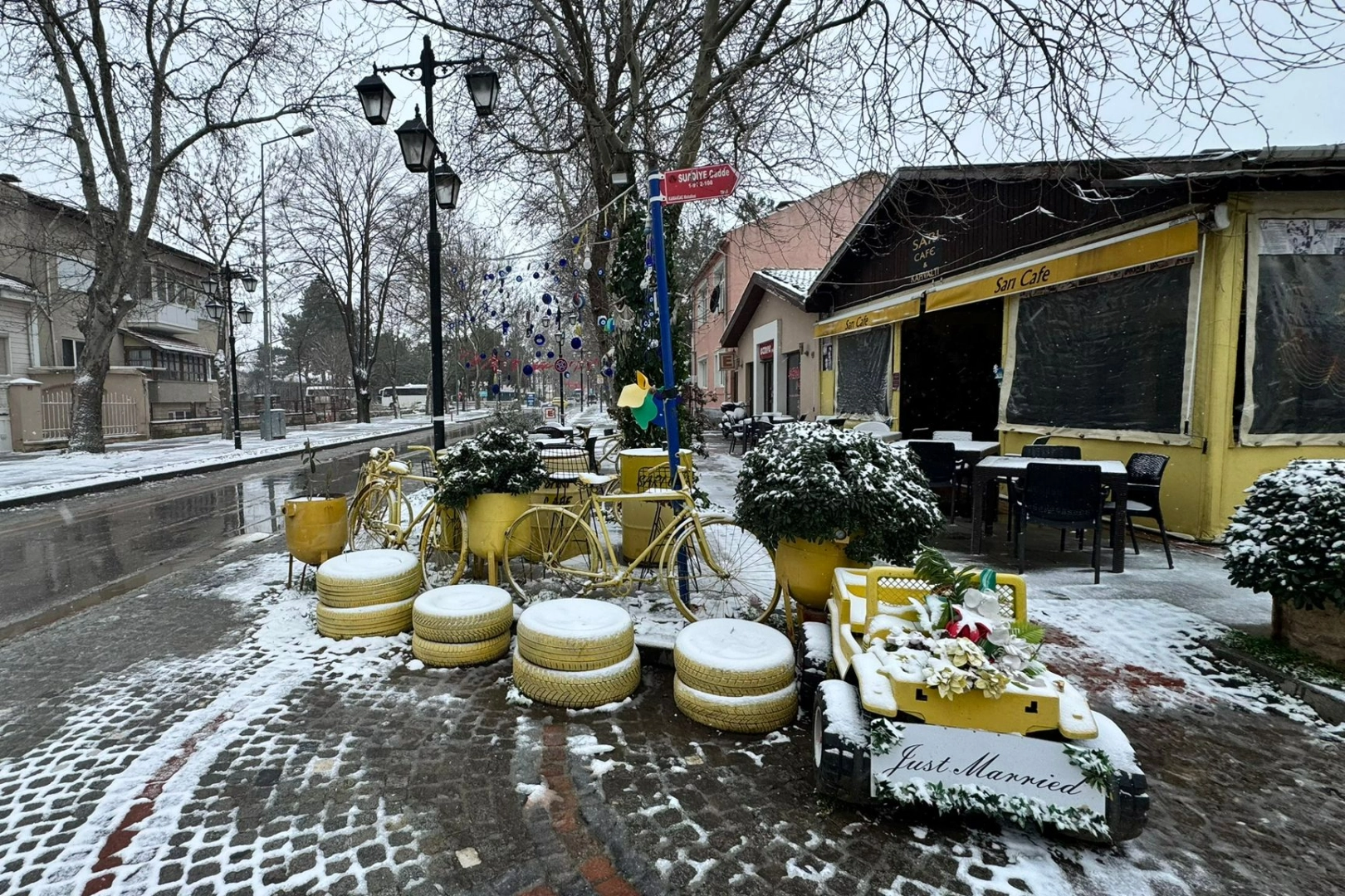 Beyaz örtüsüyle ziyaretçilerini masalsı bir yolculuğa çıkaran Karaağaç Mahallesi, kar taneleriyle birleşince fotoğraf tutkunları için eşsiz kareler oluşturdu.