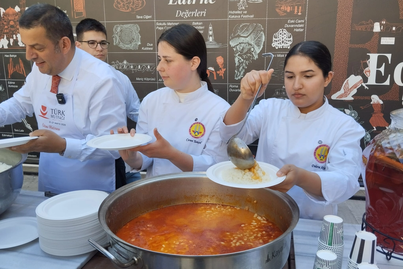 Edirne’de bugün Türk Mutfağı Haftası etkinlikleri kapsamında kuru fasulye-pilav tanıtım ve tadımı gerçekleştirildi.