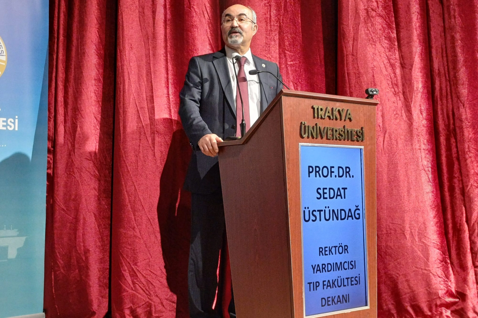 Edirne’de bugün 14 Mart Tıp Bayramı olması dolayısı ile Trakya Üniversitesi (TÜ) Balkan Kongre Merkezi’nde program gerçekleştirildi. Programda konuşma yapan TÜ Rektör Yardımcısı ve Tıp Fakültesi Dekanı Prof. Dr. Sedat Üstündağ, TÜ Tıp Fakültesi’nin tüm sorunlarını dile getirdi. Özellikle fakültenin bazı bölümlerinin depreme dayanıklılık konusunda sorunları olduğu ve su basması gibi sorunlara dikkat çeken Üstündağ, bu sorunların çözümlenmeden 14 Mart gününü bir bayram olarak kutlamanın mümkünatı olmadığını belirtti.