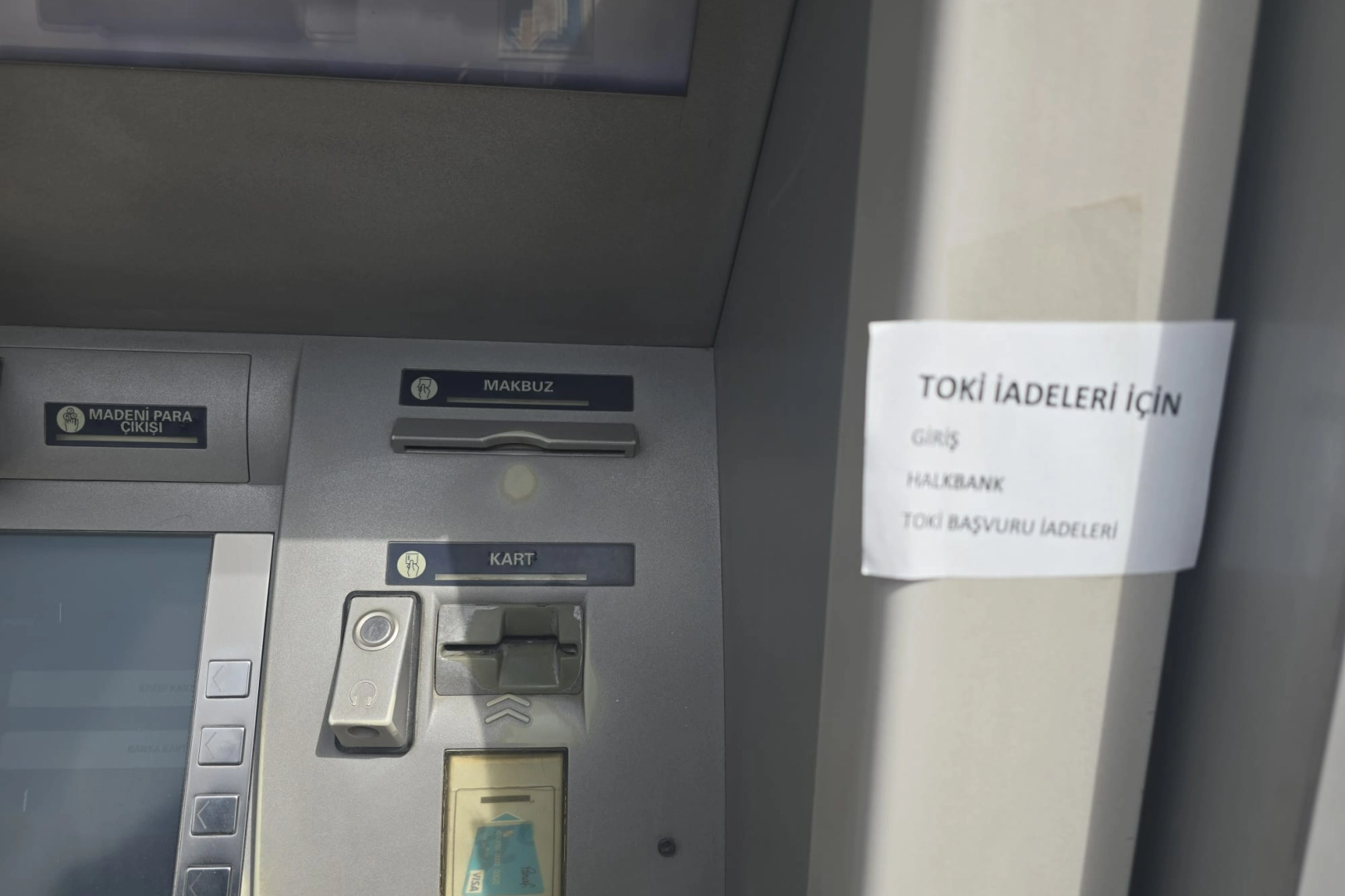 Halkbank Edirne Şubesi, yatırılan paraların alınabileceğini, banka şubesinin ATM’sine astığı yazı ile duyurdu. Yazıda, vatandaşların ATM kullanarak paralarını nasıl alabileceği aktarıldı. Ayrıca, vatandaşların geri ödemeleri, mobil bankacılık yoluyla ve kimlikleriyle müracaat ettikleri ilgili banka şubelerinden de alabilecekleri belirtildi.