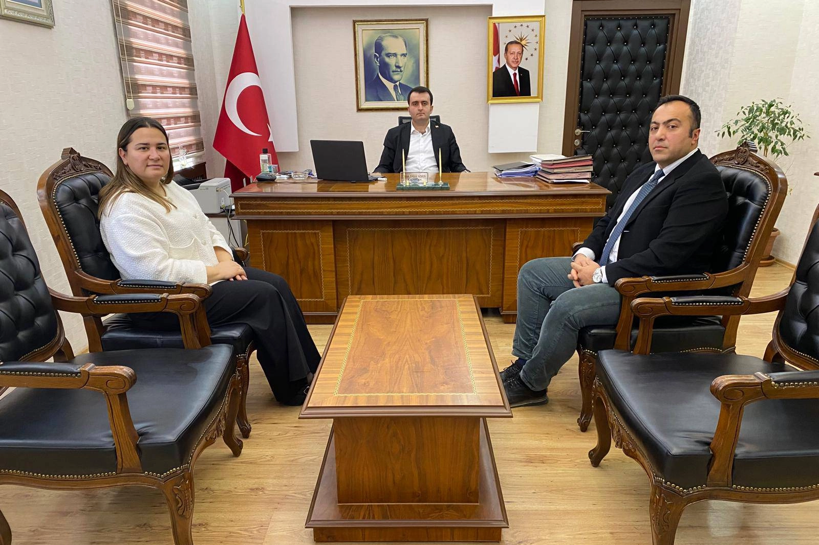 Trakya Kalkınma Ajansı Edirne Koordinatörü Bahar Manal Toprak ve Süloğlu İlçe Tarım ve Orman Müdürü Oktay Toğantimur, Süloğlu Kaymakamı Tarık Emre Uşen'i makamında ziyaret etti. Uşen, Toprak ve Toğantimur’a nazik ziyaretlerinden dolayı teşekkür etti.