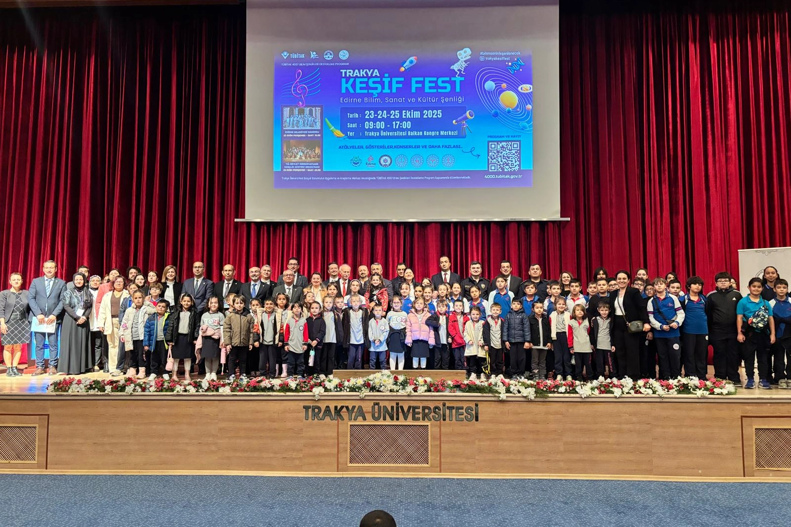 Açılış toplu fotoğraf çekimi ile sona erdi. Trakya Keşif Fest Edirne Bilim, Sanat ve Kültür Şenliği 25 Ekim 2025 tarihinde sona erecek.