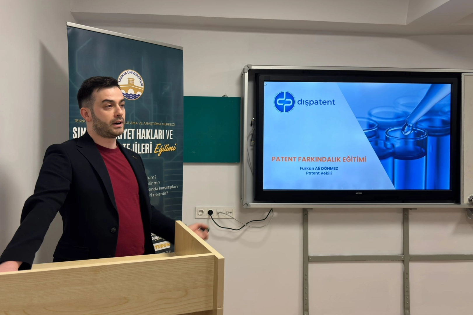Konuşmaların ardından Patent Vekili Furkan Ali Dönmez, patent farkındalık eğitimi gerçekleştirdi. Gerçekleştirilen eğitimde sınai mülkiyet hakları; patent / faydalı model – teknik fonksiyon, marka – isim hakkı, tasarım – görsel koruma, coğrafi işaret – yöresel ürün koruması gibi çeşitli konularda bilgi verdi.