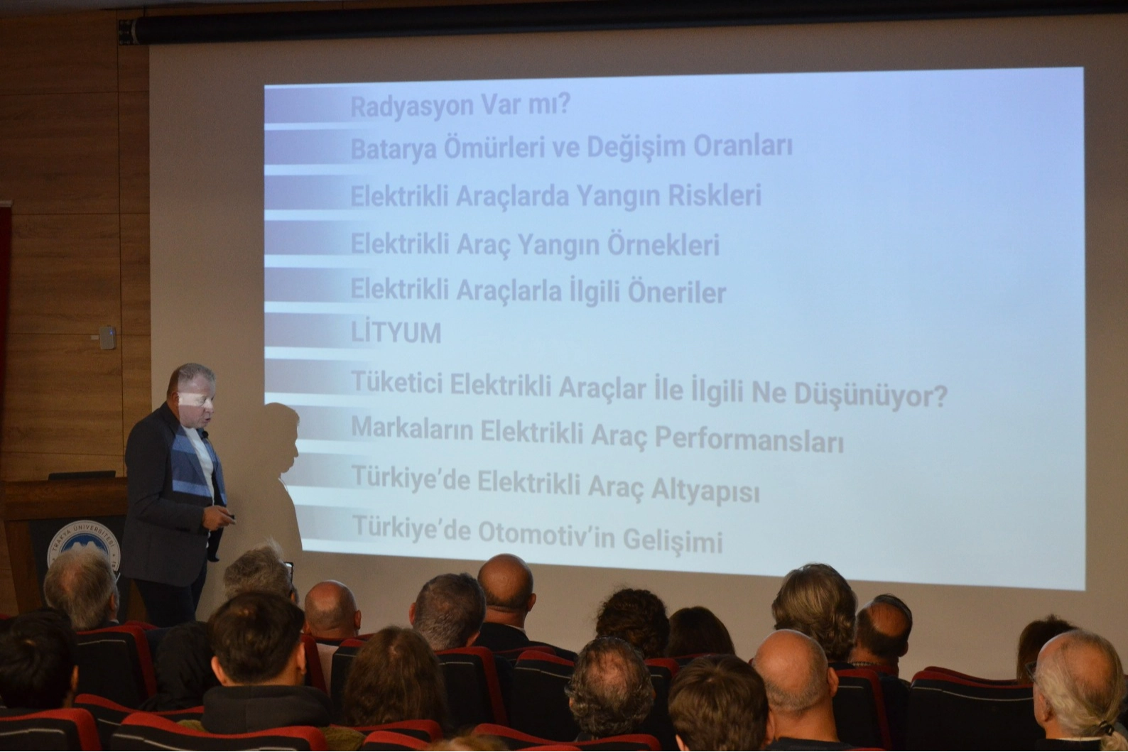 Ardından Makine Mühendisi Salih Çiçek, “Elektrikli Otomobilin Geleceği” konulu söyleşisinde elektrikli araçlarda radyasyon olup olmadığı, batarya ömürleri ve değişim oranları, elektrikli araçlarda yangın riskleri, enerji verimliliği ve otomotiv endüstrisinin mühendislerden beklentileri üzerine yaptığı açıklamalar ilgi gördü.