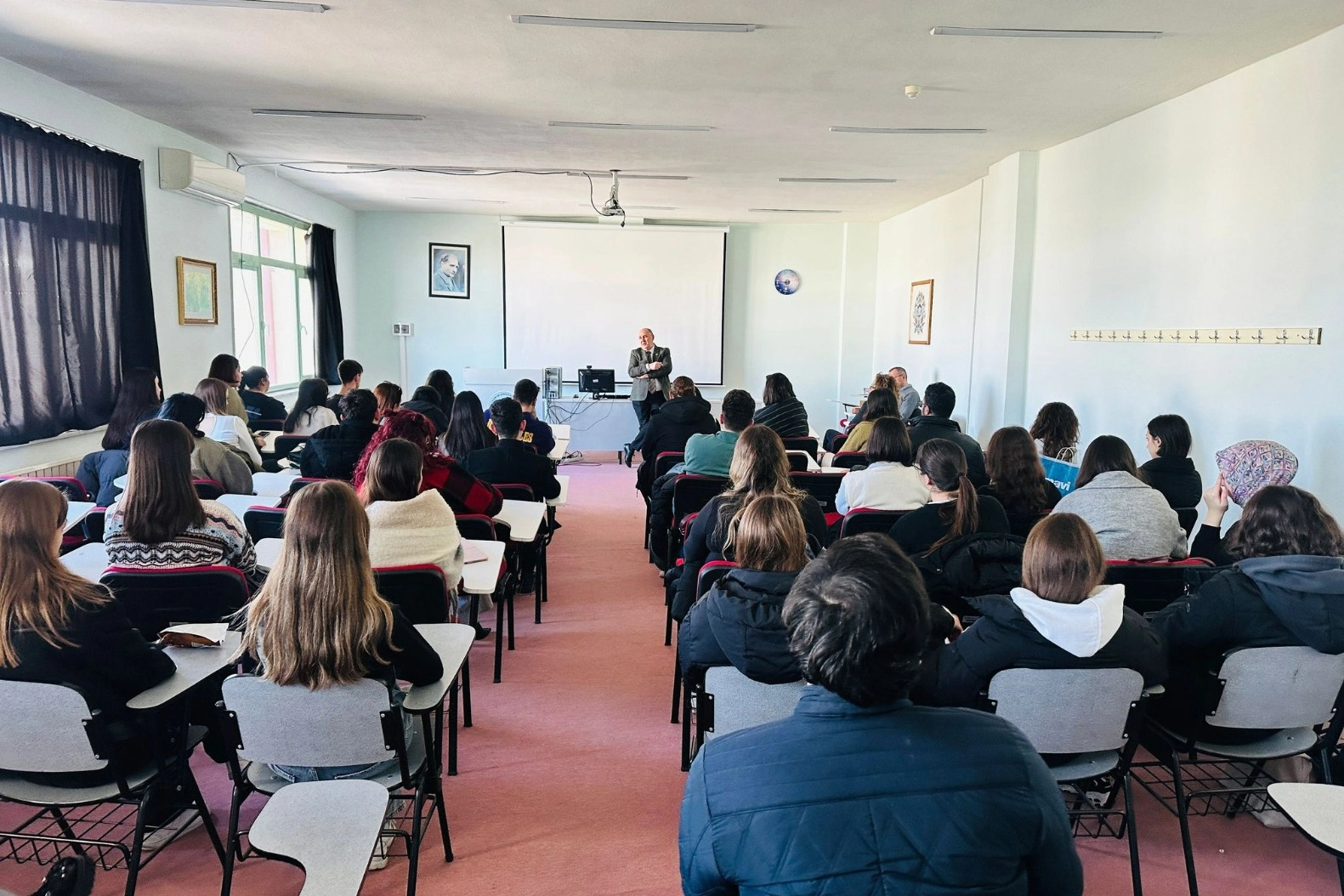 Buluşmada, Dekan Prof. Dr. Murat Yurtcan öğrencilere; idari işleyiş, öğrenci işlemleri, Kampüs 4.0 uygulaması, çift ana dal ve yan dal programları, fakülte akreditasyonu ve Türkiye Yeterlilikler Çerçevesi (TYÇ) konularında kapsamlı bilgiler sundu.