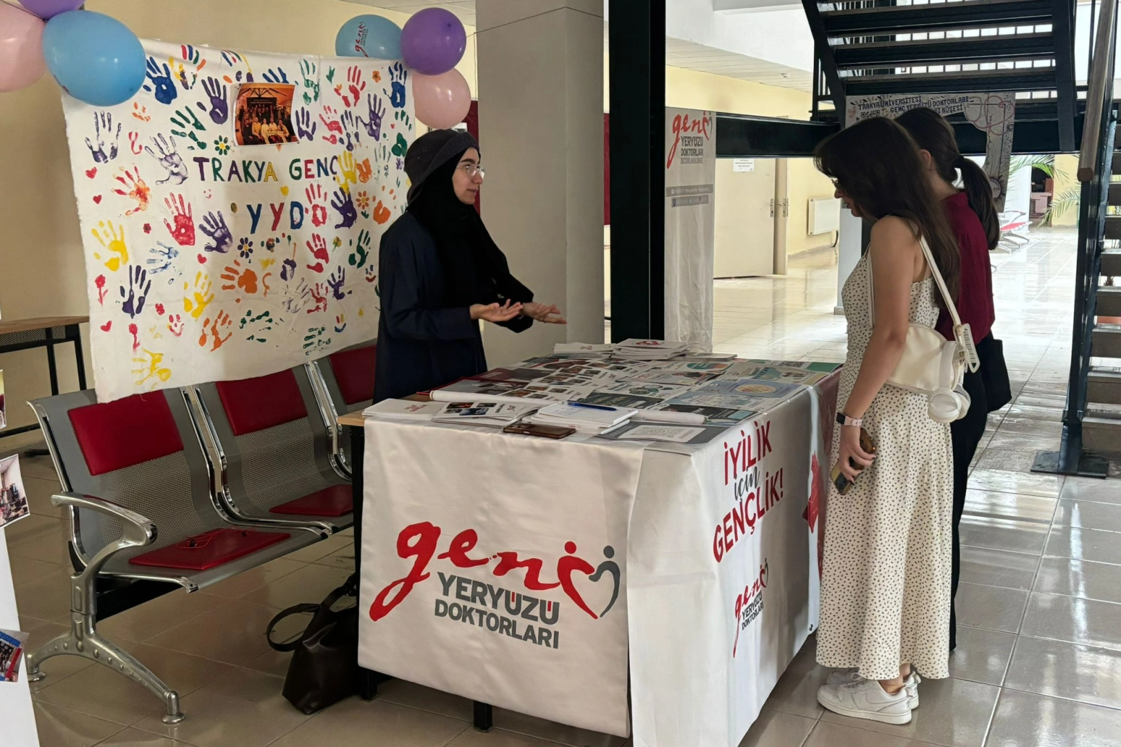 Trakya Üniversitesi Sağlık Bilimleri Fakültesi’nde öğrenciler tarafından kurulan Yeryüzü Doktorları Topluluğu, Sağlık Bilimleri Fakültesi’nde tanıtım standı açtı. Standı ziyaret eden öğrencilere topluluğun amacı, sosyal sorumluluk projeleri ve düzenlenecek etkinlikler hakkında bilgi aktarıldı.