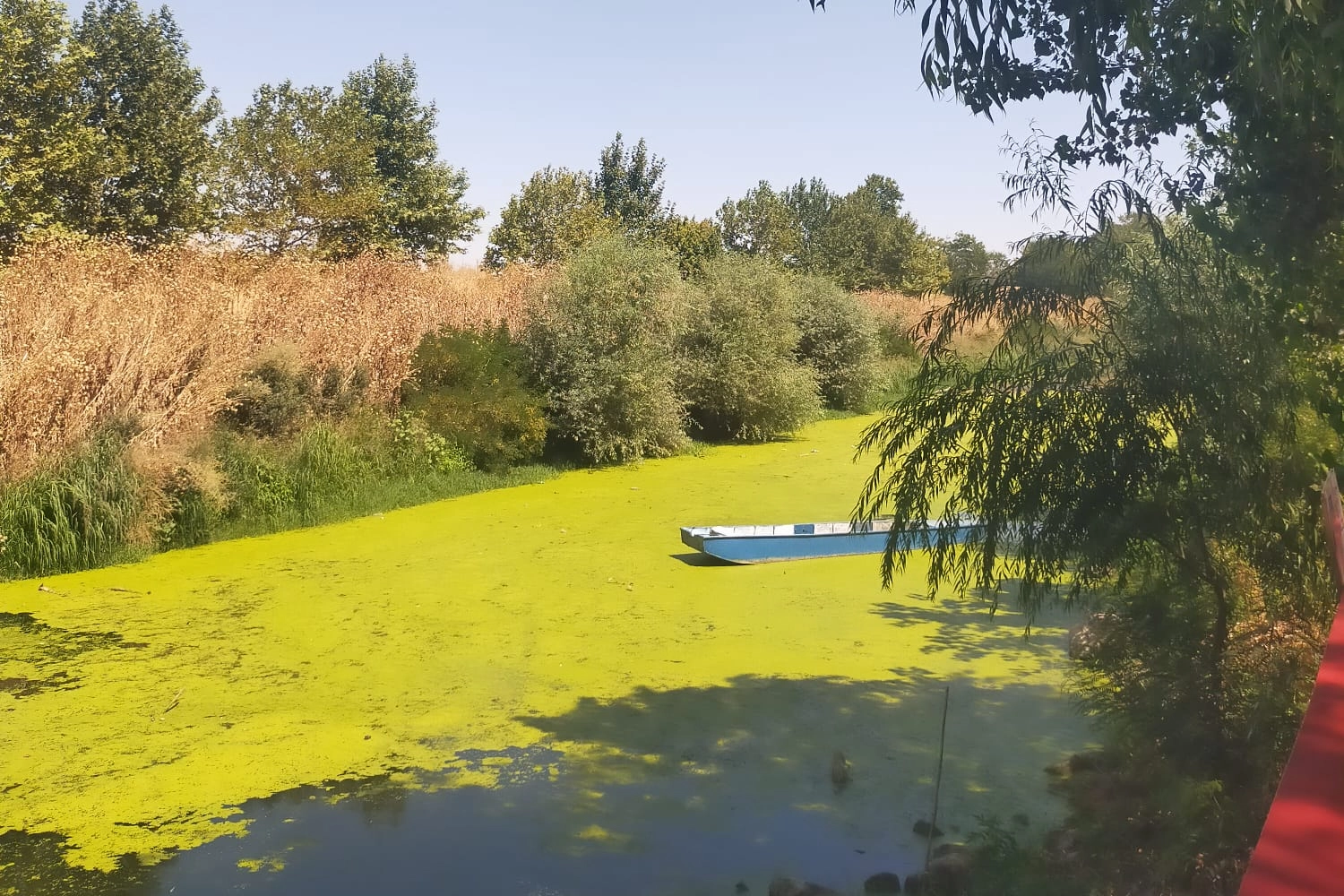 Edirne'de Tunca Nehri'nin bir kısmı tamamen yeşile büründü.