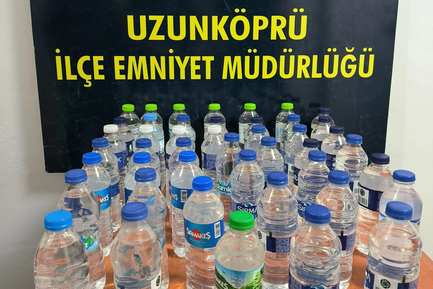 Uzunköprü İlçe Emniyet Müdürlüğü Kaçakçılık ve Organize Suçlarla Mücadele Şube Müdürlüğü (KOM) ekiplerince, sahte ve kaçak alkollü içki satışının engellenmesine yönelik bir iş yerine operasyon düzenlendi. Operasyonda yapılan aramada 46 adet 0,5 litre pet şişe içerisinde toplam 23 litre el yapımı içki ele geçirildi. Olayla ilgili gözaltına alınan K.K. isimli şüphelinin emniyetteki işlemlerinin sürdüğü öğrenildi.