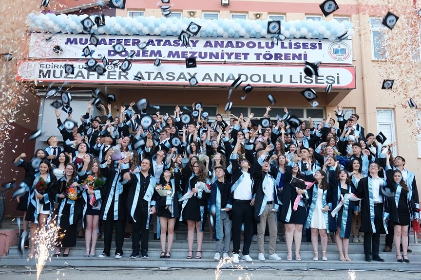 Eğitim hayatlarının önemli bir dönemini geride bırakan öğrenciler, mezuniyet coşkusunu aileleri, öğretmenleri ve protokol üyeleriyle birlikte yaşadı.