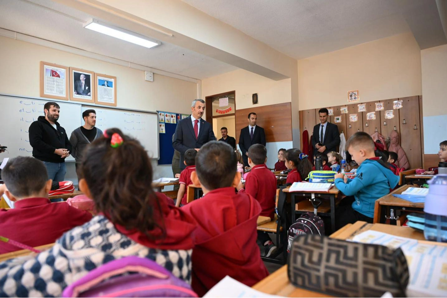 Sınıfları gezip öğrencilere iyi dersler dileyen Vali Sezer, Milli Eğitim Müdürü Ferhat Yılmaz ile birlikte okul yöneticileri ve öğretmenlerden eğitim faaliyetleri ve hizmetleri hakkında bilgi aldı.