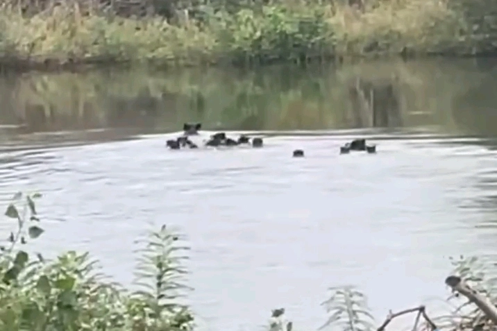 Nehir kıyısında besin arayışına çıkan domuzların, su seviyesinin düşük olduğu bir anda nehri geçtiği öğrenildi. Vatandaşlar, son aylarda nehir kenarında sık sık yaban domuzu sürülerinin görüldüğünü belirtti. Görüntüleri çeken vatandaşlar, domuzların nehri geçiş anlarını hayretler içerisinde izledi.