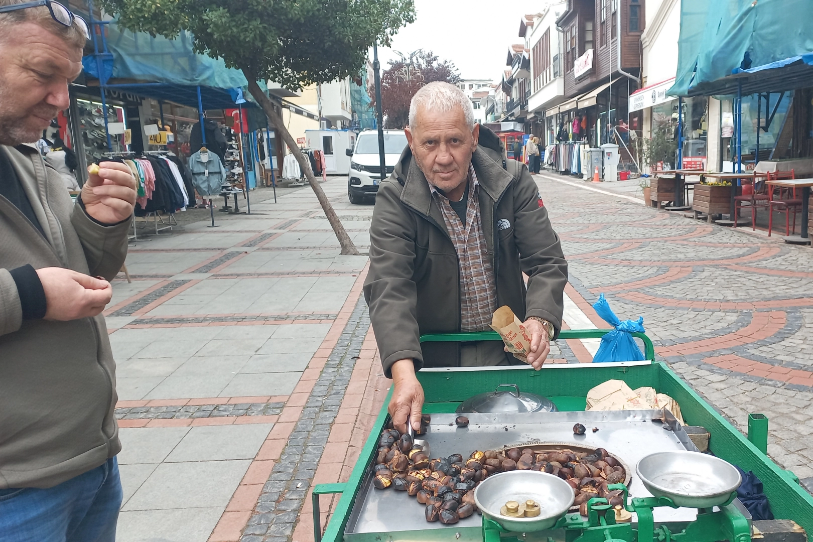 Edirne'de 73 yaşındaki Yılmaz Erol'un yarım asırlık geçim kaynağı kestane satmak oldu. Genç yaşta bir ustasından işi öğrenen Erol, 50 yıldır sonbahar ve kış aylarında Saraçlar Caddesi'nde seyyar tezgâhında kestane satarak hayatını sürdürüyor. Yaz aylarında kaynamış mısır, kışın ise kestane satan Yılmaz Erol, üç çocuğunu bu işle kazandığı parayla okutup evlendirdiğini belirterek, "Helal kazançla kimseye muhtaç olmadım" dedi. Erol, mesleğini sürdürmekten gurur duyduğunu ifade etti. "Kestaneyi seven, her gün gelir" Saraçlar Caddesi'nde vatandaşların uğrak noktası hâline gelen Erol'un tezgâhında 100 gram kestane 200 liradan satılıyor. Soğuk kış günlerinde sıcak kestane kokusuyla caddenin havasını değiştiren Erol, "Kestaneyi seven, her gün gelir" diye konuştu. "Kestaneler Sinop'tan geliyor" Vatandaş Ahmet Alagöz ise Yılmaz Erol'un sattığı kestanelerin lezzetinden memnun olduğunu belirterek, "Kestaneler Sinop'tan geliyor. Daha kaliteli olduğu için kestane kebap yemeye özellikle buraya geliyoruz" ifadelerini kullandı. "Hava şartları elverirse Mart başına kadar da sürer" Kestane sezonunun şubat ayı sonuna kadar devam edeceğini belirten Erol, "Hava şartları elverirse mart başına kadar da sürer" dedi.