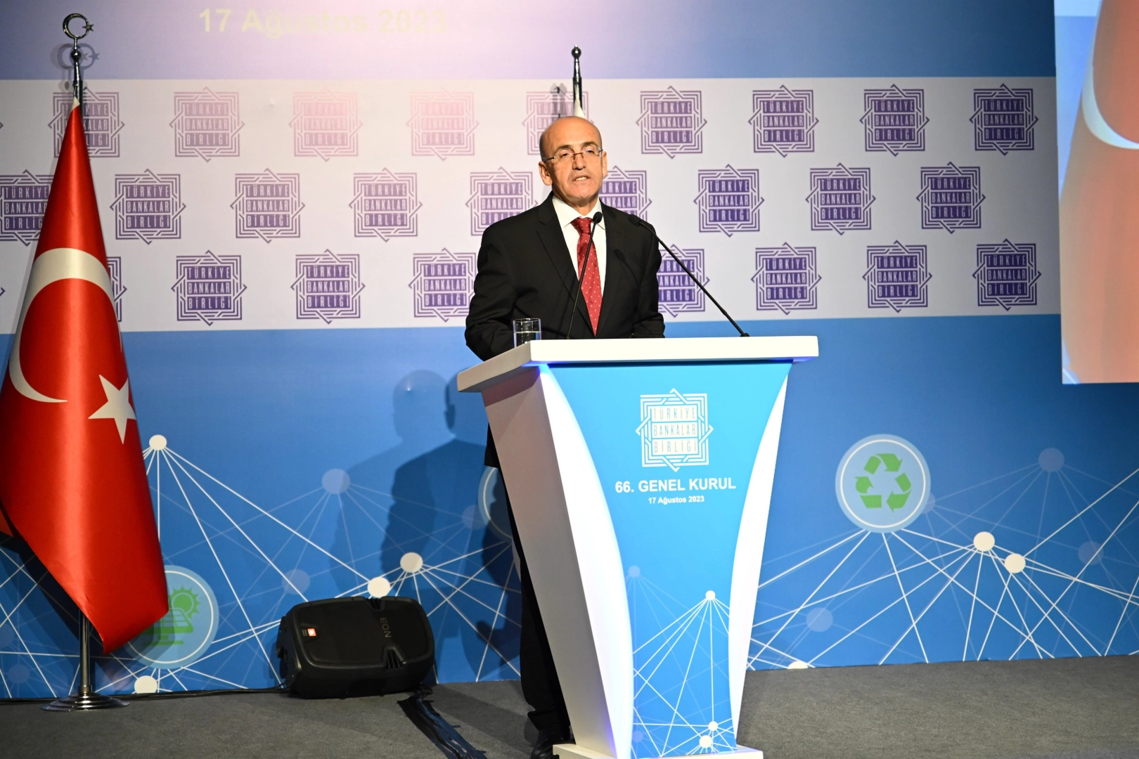 Hazine ve Maliye Bakanı Mehmet Şimşek, “Bugüne kadar kamu bankaları ihracata ve yatırımların finansmanı ile ticari krediler çok büyük bir rol üstlendiğini görüyoruz. Özel sektör bankalarının bu anlamda geride kalmasının sebeplerini de iyi biliyoruz. Özel bankaların sadece tüketici kredilerine odaklandıkları dönem artık geride kalmalı, çünkü bunun şartları ortadan kalkmıştır” dedi. Hazine ve Maliye Bakanı Mehmet Şimşek, Türkiye Bankalar Birliği’nin 66’ncı Genel Kurulu’na katıldı. Genel kurulun açılışında konuşan Bakan Şimşek, ihracatın desteklenmesinin büyük önem arz ettiğini belirterek, “Bugüne kadar kamu bankaları ihracata ve yatırımların finansmanı ile ticari krediler çok büyük bir rol üstlendiğini görüyoruz. Özel sektör bankalarının bu anlamda geride kalmasının sebeplerini de iyi biliyoruz. Özel bankaların sadece tüketici kredilerine odaklandıkları dönem artık geride kalmalı, çünkü bunun şartları ortadan kalkmıştır. Bu sürdürülebilir değildir, haklı bir gerekçeleri kalmamıştır. Reel sektörü desteklemek esas vazifemizdir” dedi. “Önümüzdeki 5 yıl içerisinde küresel büyümenin yüzde 3 civarı olmasını bekliyoruz” Hazine ve Maliye Bakanı Şimşek, “Bankacılık sektörümüz 2000’li yılların başından itibaren yapısal dönüşüm ve iyi yönetim sayesinde yakaladığı güçlü ivmeyle ülkemizin büyüme performansına çok önemli katkılar sunmuştur. Küresel finansal kriz, yakın dönemde yaşanan salgın ve bir çok iç ve dış şoklara karşı dayanıklılığını ispatlamıştır” dedi. Önümüzdeki 5 yıl içinde küresel büyümenin potansiyelin oldukça altında bir büyümeyle seyredeceğini söyleyen Şimşek, ”Önümüzdeki 5 yıl içerisinde küresel büyümenin yüzde 3 civarı olması bekleniyor. Burada parasal sıkılaşmanın etkisi ve yapısal karşı rüzgarlar da var. Küresel enflasyon düşüyor ancak hala uzun dönem ortalamalarının üzerinde. Küresel parasal sıkılaşma etkisini hissediyor. Enflasyondaki düşüş önemli; çünkü parasal sıkılaşmanın muhtemelen sonuna geldik. 2024’ün ikinci yarısından itibaren bir gevşeme olasılığı artmıştır” diye konuştu. Gelişmiş ve gelişmekte olan ülke merkez bankalarının son 20 ayda toplam 262 kez faiz artışı yaptığını söyleyen Şimşek, “Son 20 ayda 12 gelişmiş ülke merkez bankası toplam 104 kez, 22 gelişmekte olan ülkede 158 kez olmak üzere toplamda 262 kez faiz artırmıştır. Parasal sıkılaştırma döngüsünün sonuna yaklaşıyor olmamız oldukça olumlu. Ümit ediyoruz ki; 2024’ün ikinci yarısından itibaren küresel finansman koşullarında daha destekleyici ortam ile karşı karşıya kalırız. Büyüme performansımız oldukça güçlü seyretmeye devam ediyor. 2023 yılında küresel finansal koşullara rağmen yüzde 4,5 civarında bir büyüme öngörüyoruz. Bir süredir büyümenin temel belirleyici iç talep olmuştur. İç talep güçlü artış makro finansal istikrarı cari açık ve enflasyon üzerinden tehdit ediyor. Politika çerçevemizi yeniden dengelenme ihtiyacına göre şekillendiriyoruz. Ekonomi politikalarımızda şeffaflık, tutarlılık, öngörülebilirlik, uluslararası normlara uygunluk temel ilkelerimizdir” ifadelerini kullandı. “Serbest kambiyo rejimini destekliyoruz” “Biz, teşebbüs hürriyetini, serbest kambiyo rejimini, dalgalı kur sistemi, dışa açık, kurala dayalı ekonomi ilkelerini benimseyen bir sistem anlayışı içinde ilerleyeceğiz” diyen Şimşek, “Kısa vadede önceliğimiz makro finansal istikrarın kalıcı bir şekilde tesis edilmesi ve öngörülebilirliğin artırılmasıdır. Para, maliye ve kredi politikalarımızı bu hedeflerimizi sağlayacak oluşturuyoruz” dedi. Para politikalarında sadeleşme ve sıkılaşmanın devam edeceğini belirten Şimşek, “Para ve maliye politikalarını eşgüdüm içerisinde yürütmeye devam edeceğiz. Seçim sonrası azalan siyasi belirsizlik, para ve maliye politikasında attığımız adımlar beklentileri olumlu etkilemeye başlamıştır. Risk primi 700 baz seviyesinde 400 baz civarına gerilemiştir. Bu ekonomideki bütün aktörlerin daha uygun maliyetlerle kaynak bulmalarının önünü açmıştır. Küresel finansal koşullardaki sıkılaşmaya rağmen ülkemizin eurobond tahvil faizlerinde 100 baz puan düşüş olmuştur. Kredi derecelendirme kuruluşları ülkemiz için daha olumlu bir perspektif sunmaya başlamışlar, geçtiğimiz bir kredi derecelendirme kuruluşu bankacılık sistemimizin görünümünü negatiften durağana çevirmiştir. Sermaye piyasalarımıza fon akışı başlamıştır. Tüm bu gelişmeler yurt dışı finansmana erişimi kolaylaştırırken aynı zamanda maliyeti de önemli ölçüde azaltmıştır. Sektörü tedirgin eden negatif net faiz marjı dönemi de büyük oranda geride kalmıştır” diye konuştu. Bankacılık sektörünün yüksek aktif kalitesiyle, güçlü sermaye yapısıyla sağlıklı bir görünüme sahip olduğunun altını çizen Şimşek, “Burada özellikle önümüzdeki dönemde finansal mimari ve altyapının güçlendirilmesi programıyla finansal ekosistemde uygulayacağımız reformlarla finansal istikrarı daha güçlendireceğiz. Sermaye piyasalarını derinleştireceğiz. Sürdürülebilir finans, katılım finansı ve sigortacılık sektörünün gelişmesi için önemli adımlar atacağız. Bu çerçevede finansal piyasalarda risk yönetimini güçlendireceğiz. Karbon piyasasını kuracağız TCMB ürünlerinin katılım finansa uyumunu sağlayacağız” şeklinde konuştu. “Özellikle ihracatın desteklenmesi büyük önem arz ediyor” Bankacılık sektörünün reel ekonomiyi desteklemek için önümüzdeki dönemde yurt dışı finansman imkânlarını daha güçlü şekilde değerlendirmesini beklediklerini anlatan Şimşek,