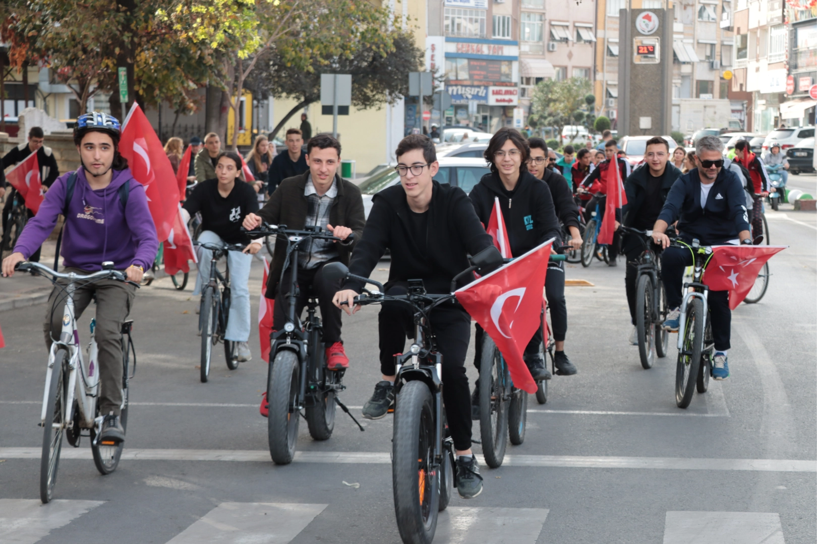 Cumhuriyet'in 100. yıl dönümünü öğrencilerle birlikte kutladıklarını ifade eden Özefsun, bisiklet etkinliğini, Cumhuriyet'in 100. yılına ithafen 100 öğrenci ile gerçekleştirdiklerini bildirdi.