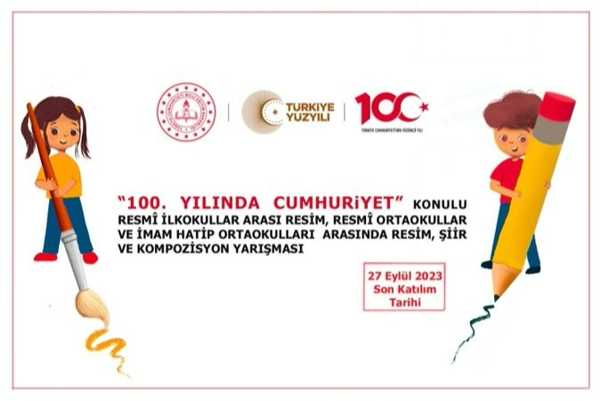 Millî Eğitim Bakanlığı tarafından Cumhuriyetin 100’üncü yılı dolayısıyla gerçekleştirilecek etkinlikler kapsamında Türkiye genelinde ilkokullar arası resim yarışması, ortaokullar arasında ise resim, şiir ve kompozisyon yarışmaları düzenlenecek.