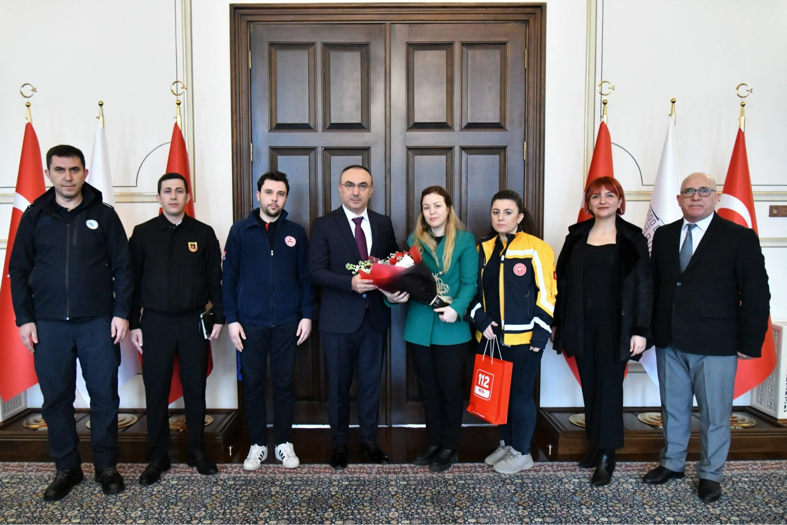 112 Acil Çağrı Merkezi Müdürü Selma Ergönül ve 112 Acil Çağrı Merkezi personeli, Tekirdağ Valisi Recep Soytürk’ü makamında ziyaret etti. Ergönül ve 112 Acil Çağrı Merkezi personeli, vatandaşların gereksiz yere çağı merkezini rahatsız etmeleri konusunda yaşadıkları sıkıntıları da dile getirdi. Ziyaretleri sırasında konuşan Vali Soytürk, “Acil durum çağrısı yapma halinde vatandaşlarımızın birden çok numara yerine tek bir numarayı öğrenmeleri ve acil yardım çağrısı alındıktan sonra en kısa sürede olay mahalline ya da acil durumdaki kişiye ulaşabilmesi amacıyla acil yardım telefonları tek numarada toplanmıştır. Bu numara 112’dir. 112 hattı zaman zaman gereksiz yere meşgul ediliyor. Acil çağrıların gerçekten ihtiyacı olan kişilere ulaşması için 112 hattını gereksiz yere meşgul etmeyelim” dedi.
