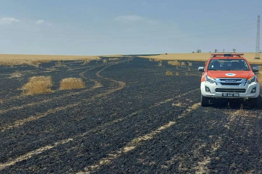 İtfaiyenin müdahalesiyle söndürülen yangında, yaklaşık 15 dönümlük buğday ekili alan zarar gördü.