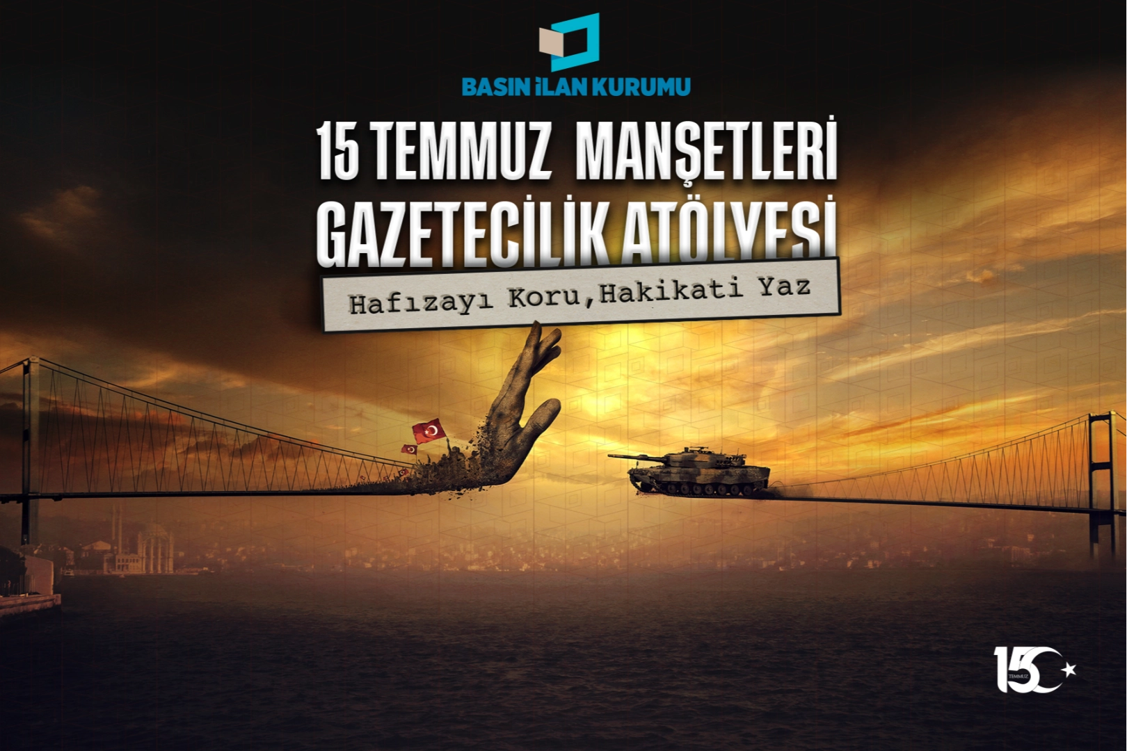 Basın İlan Kurumu tarafından 15 Temmuz Darbe Girişiminin 10. yıl dönümünde “Hafızayı Koru, Hakikati Yaz” temasıyla Türkiye genelinde 7 bölgeyi temsilen 7 üniversiteyle iş birliği içerisinde yürütülecek olan “15 Temmuz Manşetleri Gazetecilik Atölyesi”, genç iletişimcilerin mesleki reflekslerini tarihsel bir olay üzerinden yeniden değerlendirmelerine imkân tanıyacak.