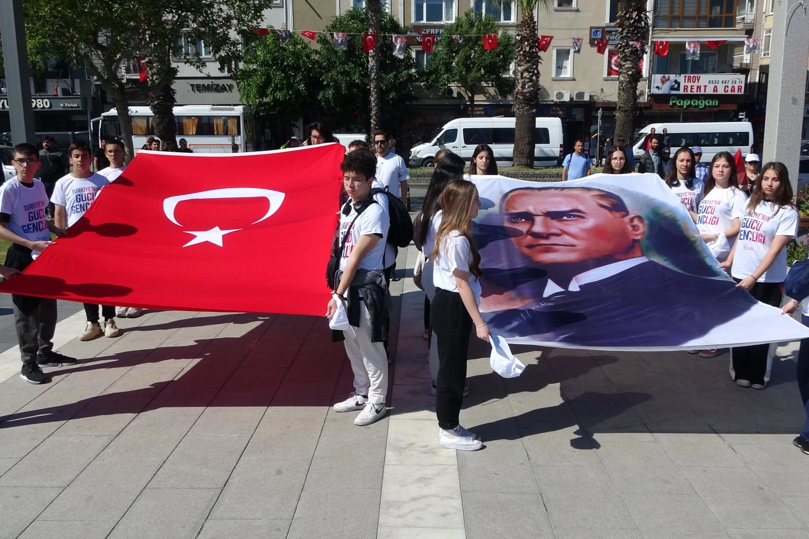 Çanakkale'de 19 Mayıs Atatürk'ü Anma, Gençlik ve Spor Bayramı'nın 106'ncı yıl dönümü etkinlikleri Cumhuriyet Meydanı'nda Gençlik ve Spor İl Müdürü Ömer Kalkan'ın Atatürk Anıtı'na çelenk bırakmasıyla başladı. Tören, saygı duruşunda bulunulması ve İstiklal Marşı'nın okunmasıyla devam etti. Günün anlam ve önemini belirten konuşmayı yapan Gençlik ve Spor İl Müdürü Ömer Kalkan, "Bugün Türkiye Cumhuriyeti'nin temellerinin atıldığı, bağımsızlık meşalesinin sönmemek üzere yakıldığı kutlu bir günün, 19 Mayıs 1919'un 106'ncı yıl dönümü münasebetiyle toplanmış bulunuyoruz. Gazi Mustafa Kemal Atatürk Samsun'a çıkarak kurtuluş mücadelesini başlattı. 1071'de Sultan Alparslan önderliğinde kazanılan Malazgirt Zaferi, Anadolu'nun kapılarını bizlere açarken bir medeniyetin başlangıçı olmuştur. Türk milletinin yalnızca Anadolu'ya değil, Balkanlar'a ve Avrupa'ya da umut ve adalet götüreceğini göstermiştir. Osman Gazi'nin hayali, Orhan Gazi'nin cesaretiyle birleşti. Türk milleti doğudan batıya doğru bir medeniyet yürüyüşüne başladı. Bu kadim millet asırlar sonra Gazi Mustafa Kemal Atatürk önderliğinde bir kez daha ayağa kalktı. 19 Mayıs 1919'da Samsun'a çıkan Atatürk, geçmişin mirasını geleceğe taşıma kararlılığıyla hareket etti. Malazgirt'le başlayan bir yürüyüş, Rumeli'de büyüyen inanç, 19 Mayıs'ta yeniden hayat buldu. 19 Mayıs 1919'da Samsun'da yakılan Milli Mücadele ateşi Türkiye Yüzyılı'nda da yolumuzu aydınlatmaya devam ediyor" dedi. Konuşmanın ardından Cumhuriyet Meydanı, İnönü Caddesi, Ziveriye Sokak ve Kayserili Ahmet Paşa Caddesi üzerinden Çağlar Kaynak basketbol sahasına kadar bayrak yürüyüşü gerçekleştirildi. Türk bayrağı ile Atatürk portresinin taşındığı yürüyüşe katılanlar, ellerindeki Türk bayrakları ile 19 Mayıs Atatürk'ü Anma, Gençlik ve Spor Bayramı'nın 106'ncı yıl dönümünü coşkuyla kutladı. Bayram, Gençlik Festivali kapsamında kordon boyunda gün boyu çeşitli etkinliklerle kutlanacak. Törene, Çanakkale Valisi Doç. Dr. Ömer Toraman, Belediye Başkanvekili Av. Bülent Şarlan, İl Emniyet Müdürü Kenan Kurt, Boğaz ve Garnizon Komutanı Tuğamiral Mustafa Biçen, daire amirleri, gaziler, siyasi parti temsilcileri, öğrenciler ve çok sayıda kişi katıldı.