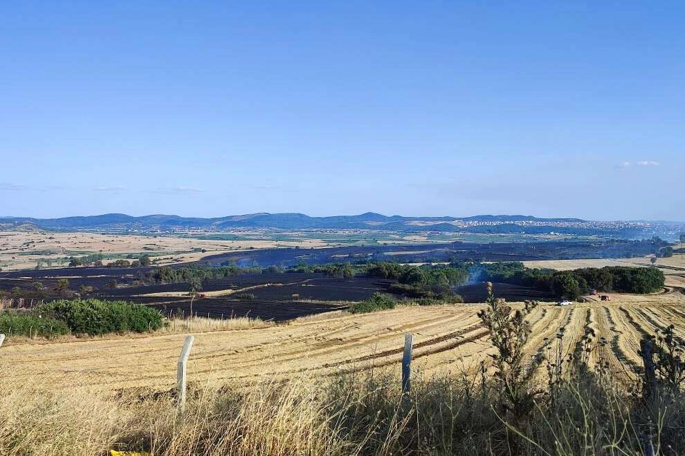 Yaklaşık 2 saat sonra kontrol altına alınan yangın söndürülürken, yarısından fazlası buğday ekili olan 2 bin dönüme yakın arazinin zarar gördüğü öğrenildi.