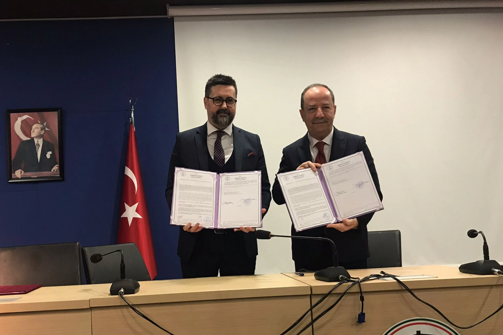 Edirne Belediye Başkan Yardımcıları Selçuk Çakır, Ertuğrul Tanrıkulu, Yaver Tetik, Baro eski başkanlarından Alper Pınar, Türk Hava Kurumu Edirne Şube Başkanı Coşkun Molla ve çok sayıda baro üyesi avukatın da hazır bulunduğu tören Recep Gürkan ve Gökhan Karakoç’un protokolü imzalamasının ardından sona erdi.
