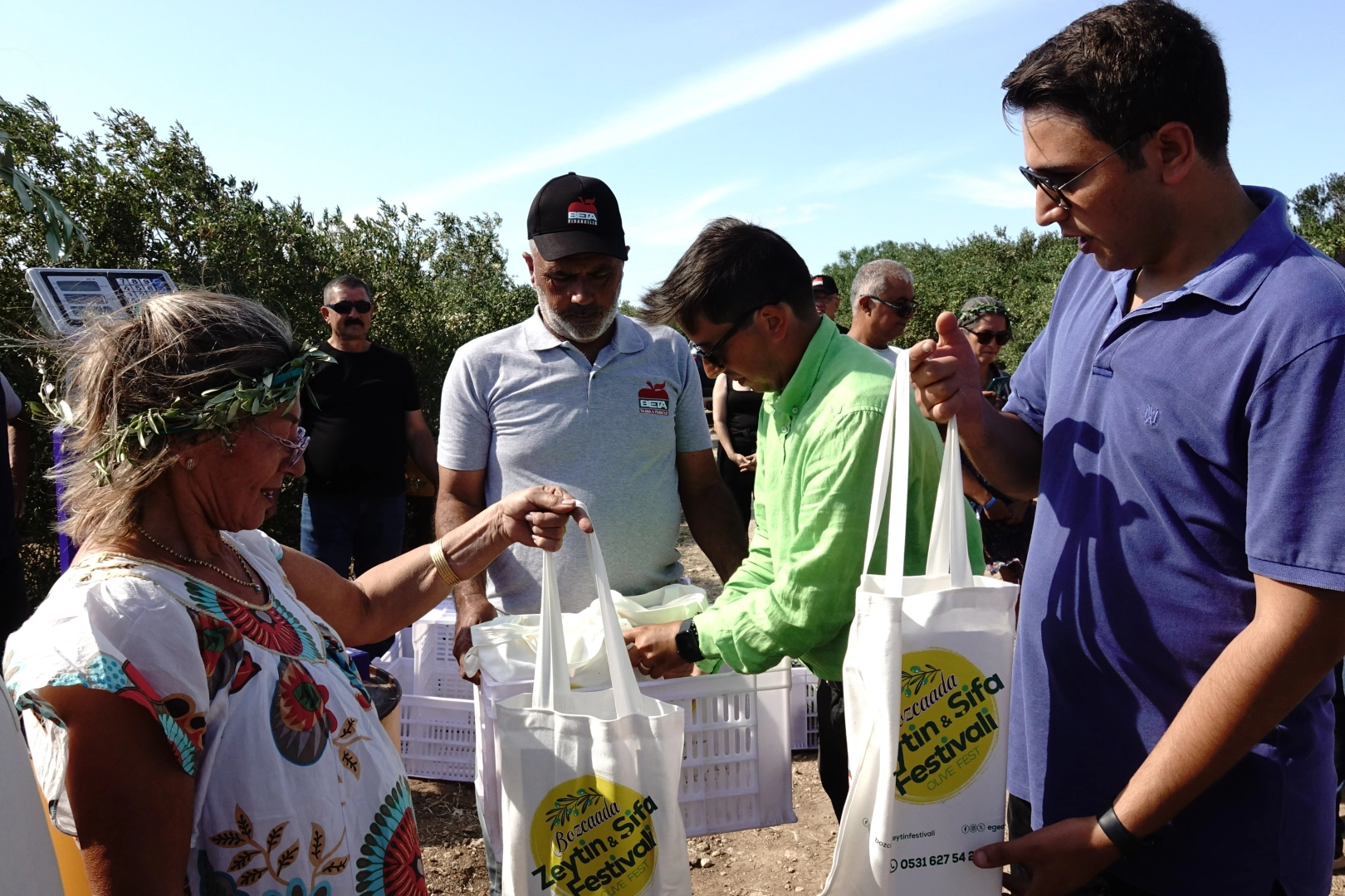 İlçe belediyesinin de destek verdiği festivale katılanlar, davul zurna eşliğinde hasadın yapılacağı zeytin bahçesine traktör römorkunda ada turu atarak ulaştı.
