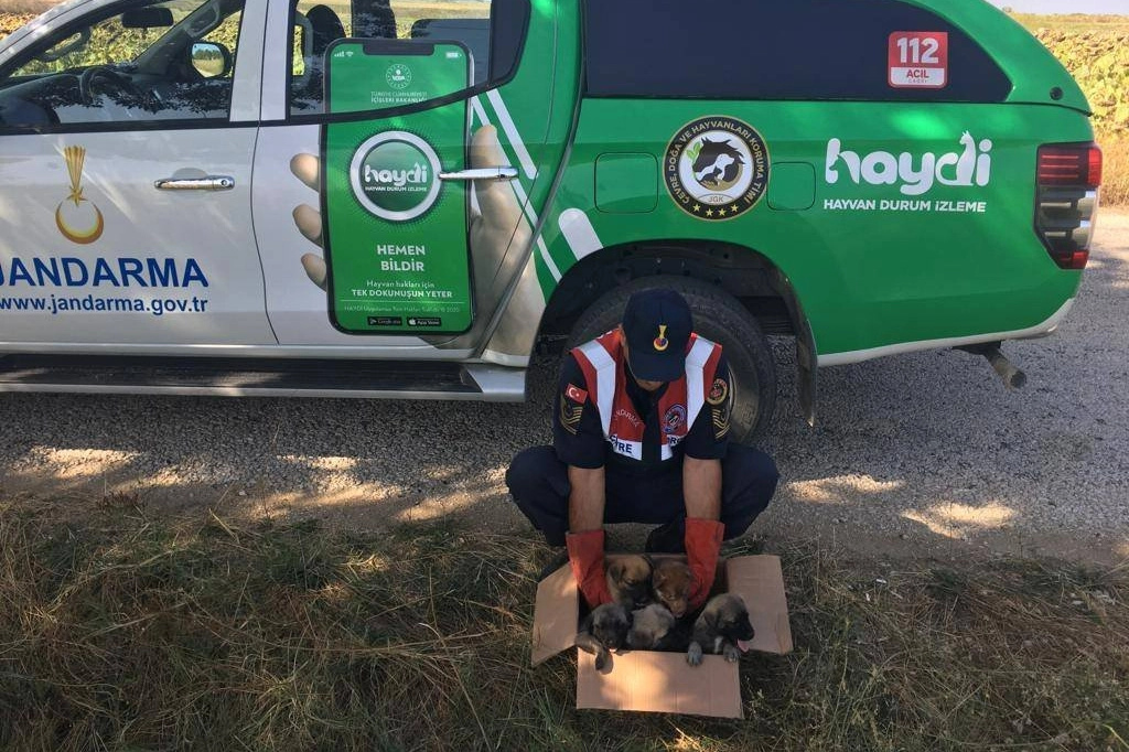 Edirne İl Jandarma Komutanlığı Çevre, Doğa ve Hayvanları Koruma Tim Komutanlığı tarafından gerçekleştirilen devriye faaliyetleri sırasında Edirne - Süloğlu karayolu kenarında terk edilmiş 5 adet yavru köpek bulundu.