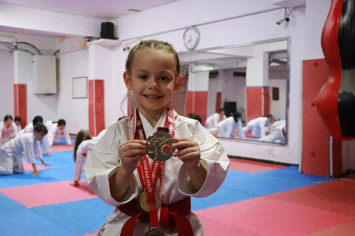 Ayza Akgün, geçen ay Gaziantep'te düzenlenen Türkiye Minikler Karate Şampiyonası'nda da minik kızlar kata dalında altın madalya elde ederek kürsüde yer aldı.